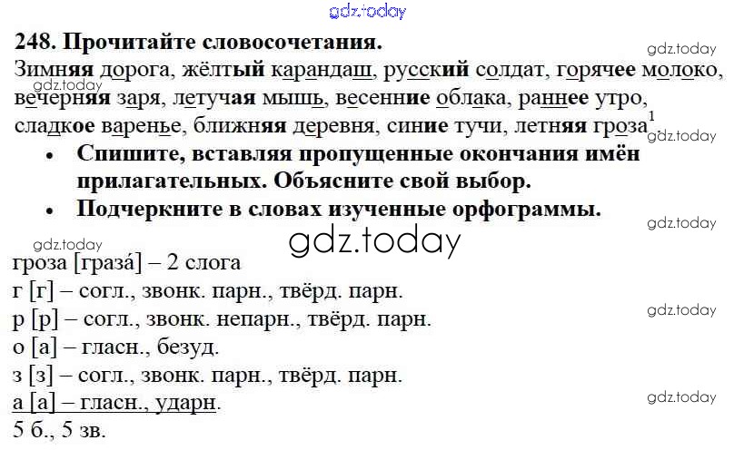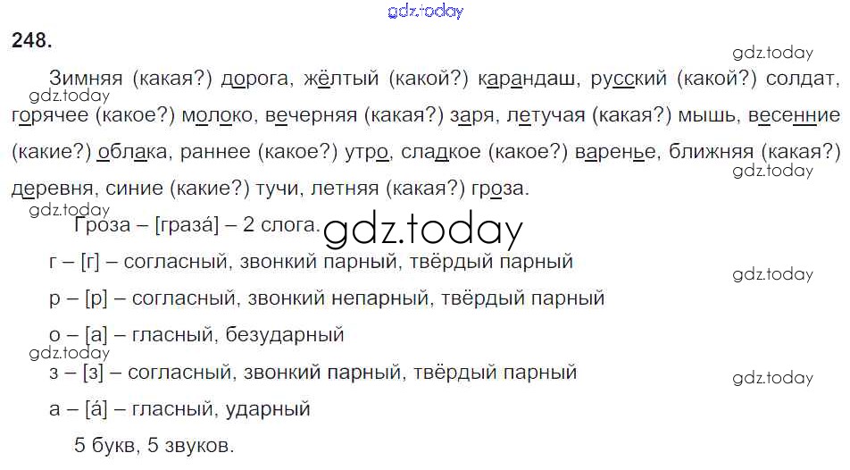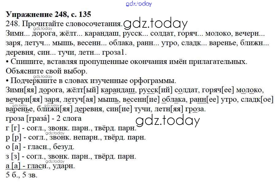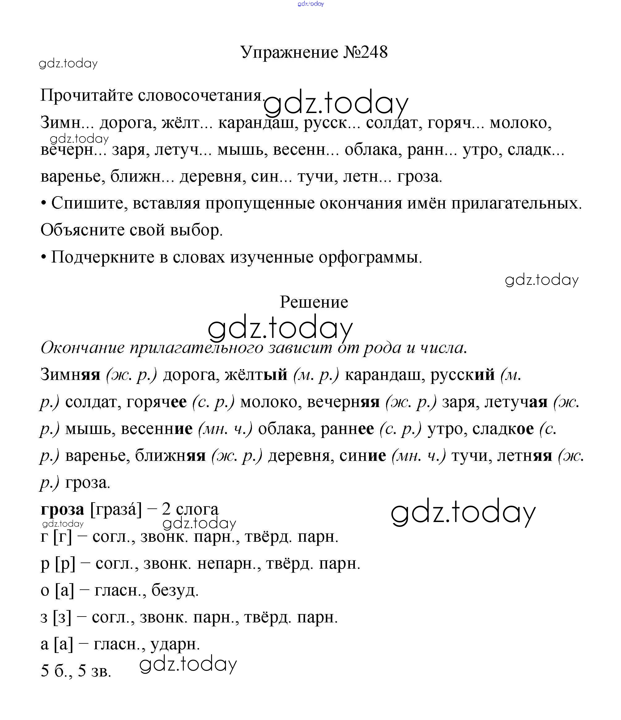 На страницах сайта gdz.today вы найдете учебный и вспомогательный материал, направленный на улучшения знаний школьной программы. ГДЗ - онлайн мир знаний Упражнения Часть 2 248 Учебнику по Русскому языку для 3 класса Канакина, Горецкий Просвещение Школа России 2013
