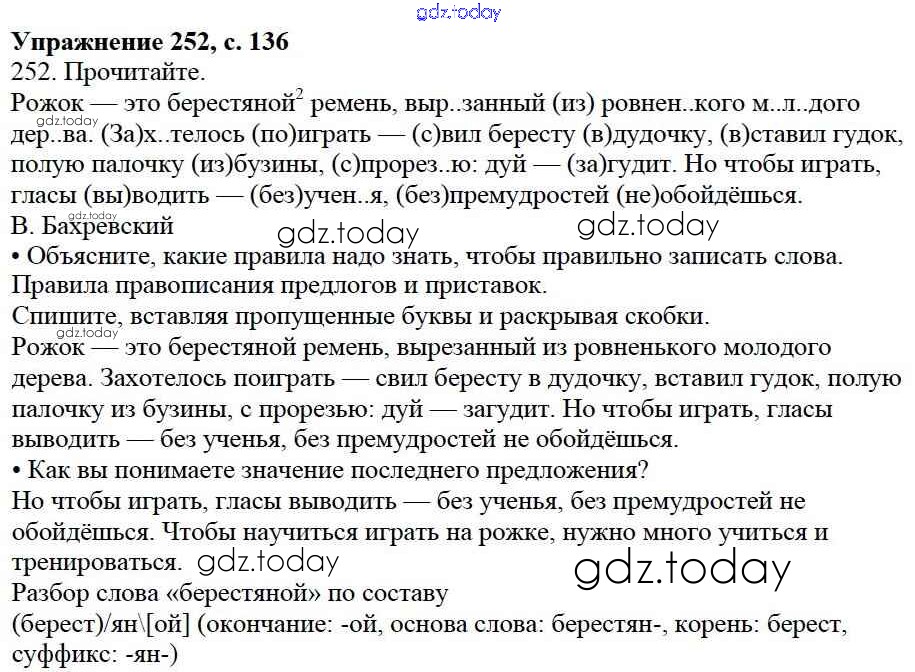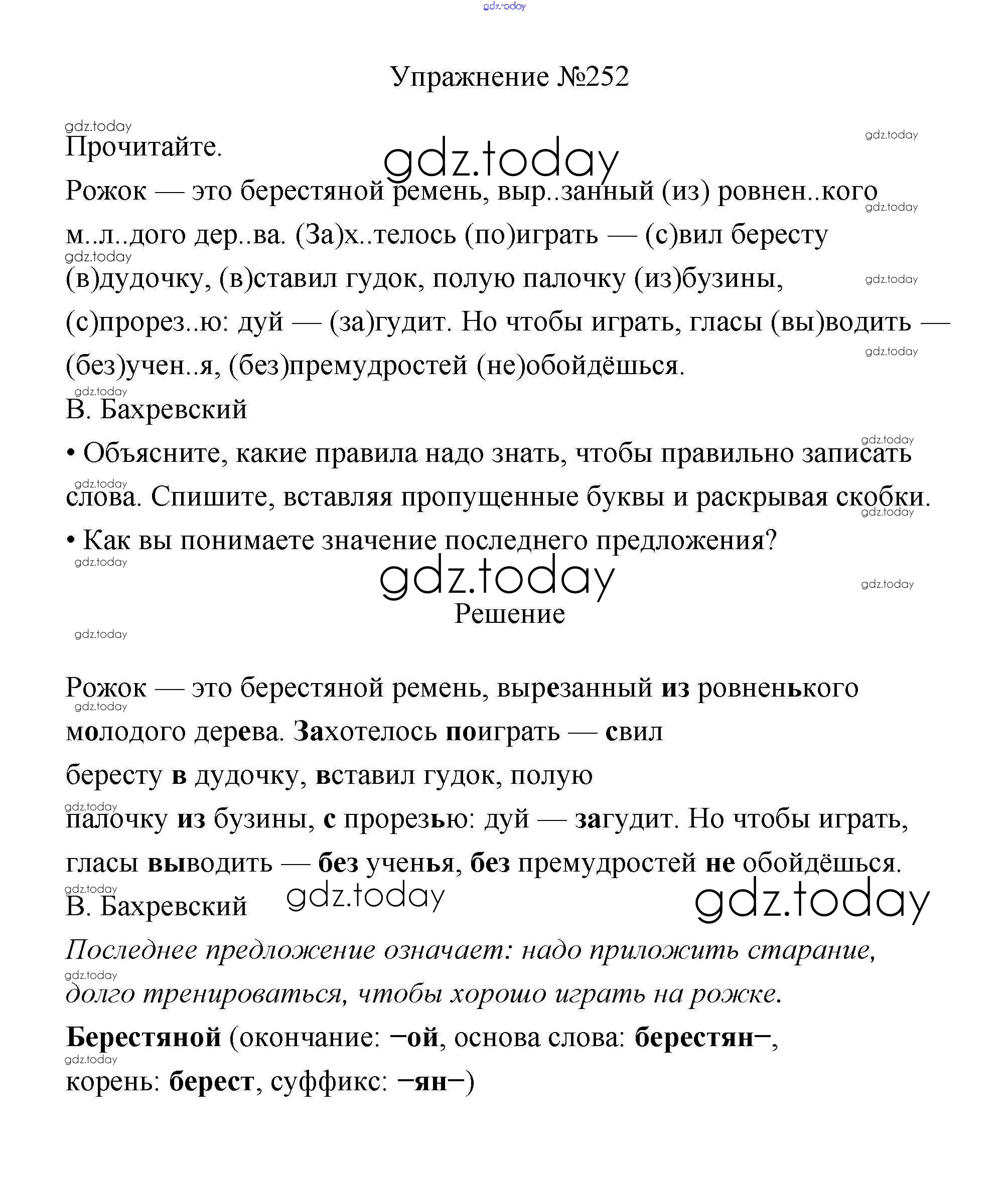 На страницах сайта gdz.today вы найдете учебный и вспомогательный материал, направленный на улучшения знаний школьной программы. ГДЗ - онлайн мир знаний Упражнения Часть 2 252 Учебнику по Русскому языку для 3 класса Канакина, Горецкий Просвещение Школа России 2013