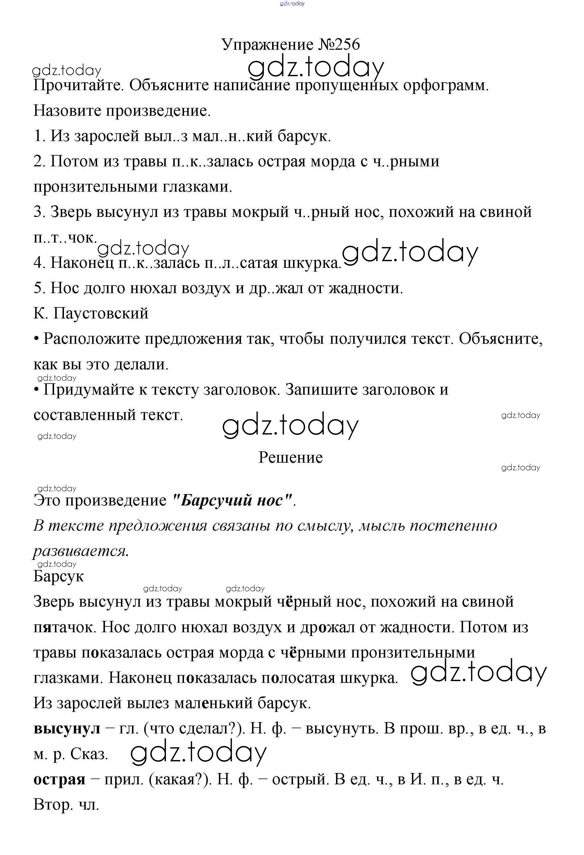 На страницах сайта gdz.today вы найдете учебный и вспомогательный материал, направленный на улучшения знаний школьной программы. ГДЗ - онлайн мир знаний Упражнения Часть 2 256 Учебнику по Русскому языку для 3 класса Канакина, Горецкий Просвещение Школа России 2013