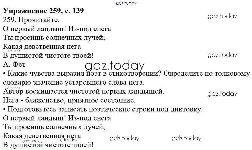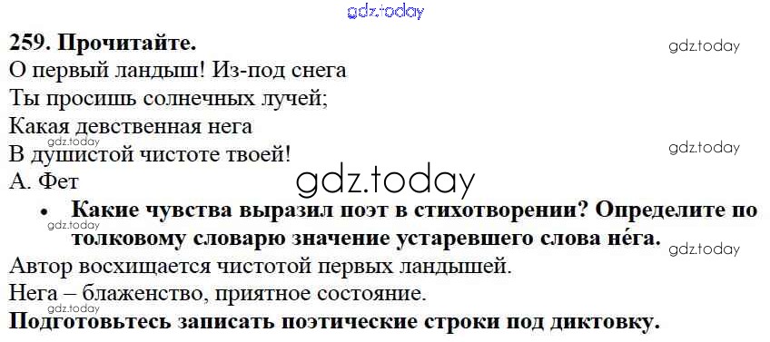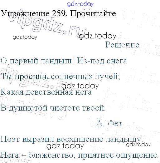 На страницах сайта gdz.today вы найдете учебный и вспомогательный материал, направленный на улучшения знаний школьной программы. ГДЗ - онлайн мир знаний Упражнения Часть 2 259 Учебнику по Русскому языку для 3 класса Канакина, Горецкий Просвещение Школа России 2013