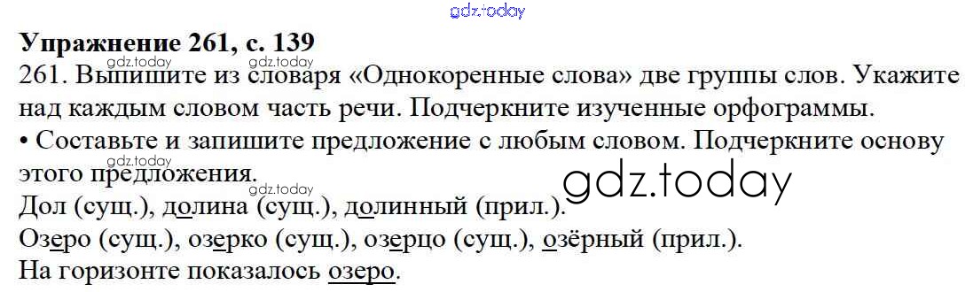 На страницах сайта gdz.today вы найдете учебный и вспомогательный материал, направленный на улучшения знаний школьной программы. ГДЗ - онлайн мир знаний Упражнения Часть 2 261 Учебнику по Русскому языку для 3 класса Канакина, Горецкий Просвещение Школа России 2013