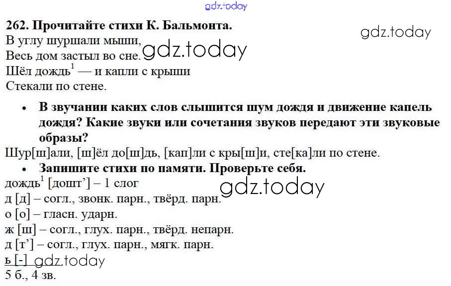 На страницах сайта gdz.today вы найдете учебный и вспомогательный материал, направленный на улучшения знаний школьной программы. ГДЗ - онлайн мир знаний Упражнения Часть 2 262 Учебнику по Русскому языку для 3 класса Канакина, Горецкий Просвещение Школа России 2013