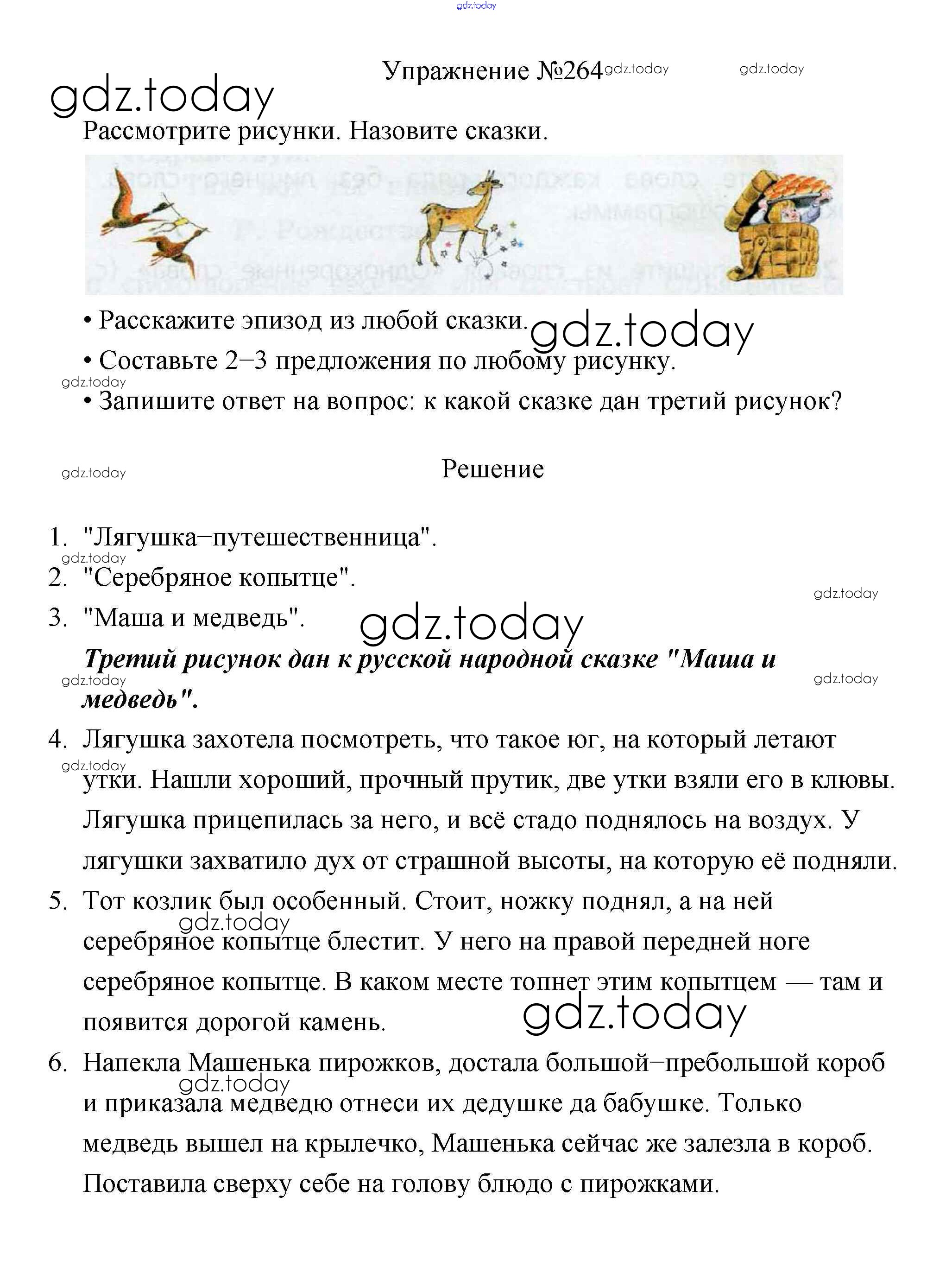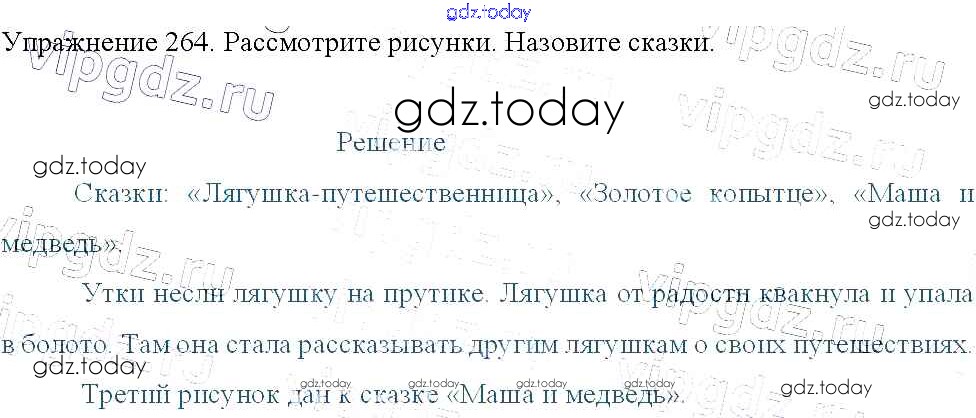 На страницах сайта gdz.today вы найдете учебный и вспомогательный материал, направленный на улучшения знаний школьной программы. ГДЗ - онлайн мир знаний Упражнения Часть 2 264 Учебнику по Русскому языку для 3 класса Канакина, Горецкий Просвещение Школа России 2013