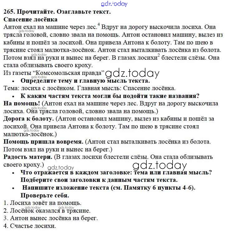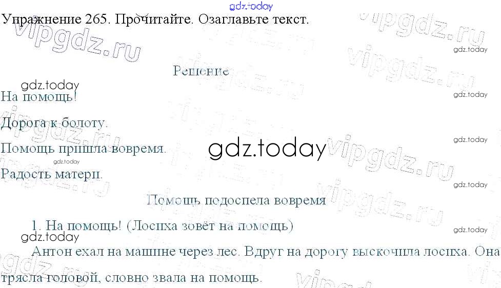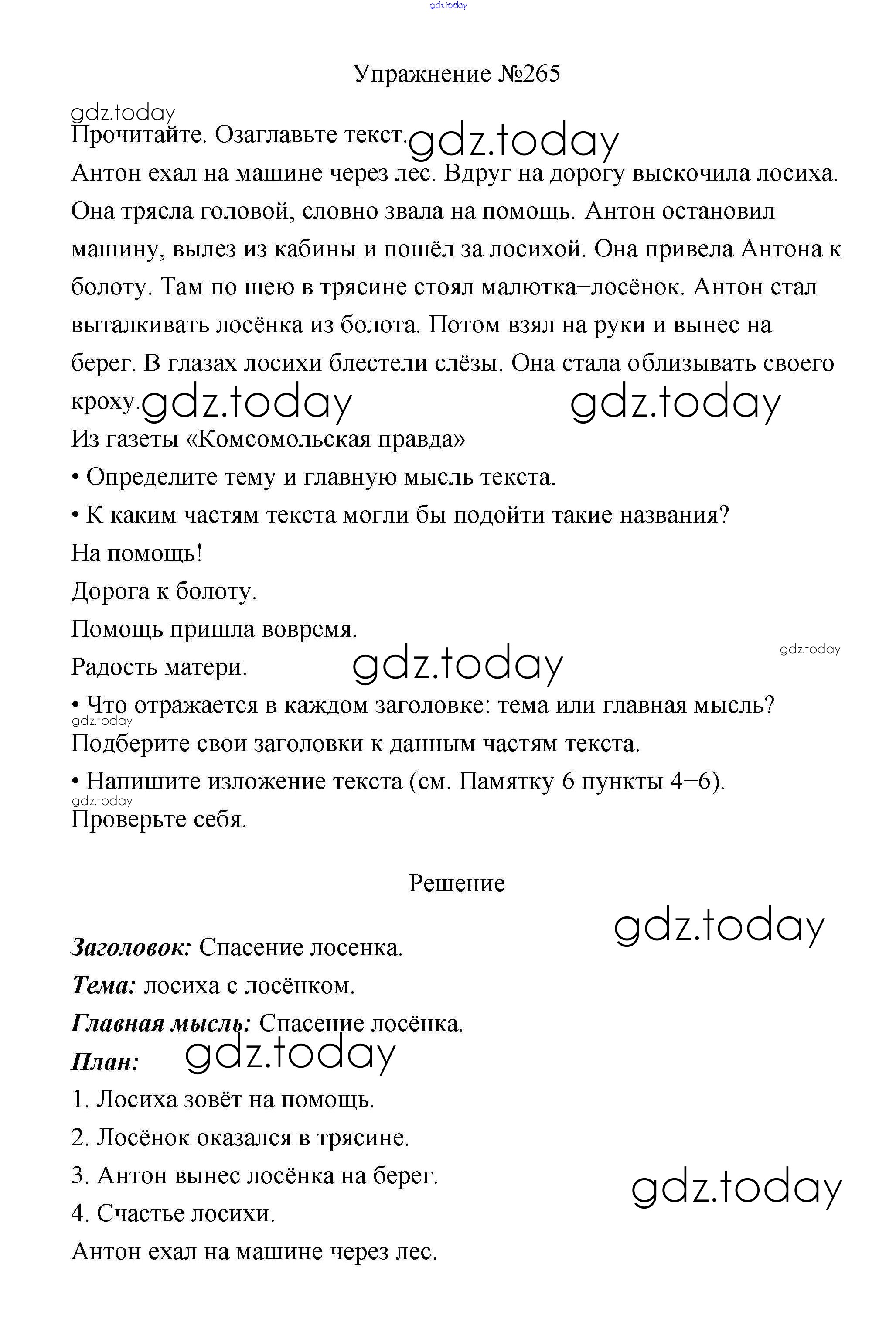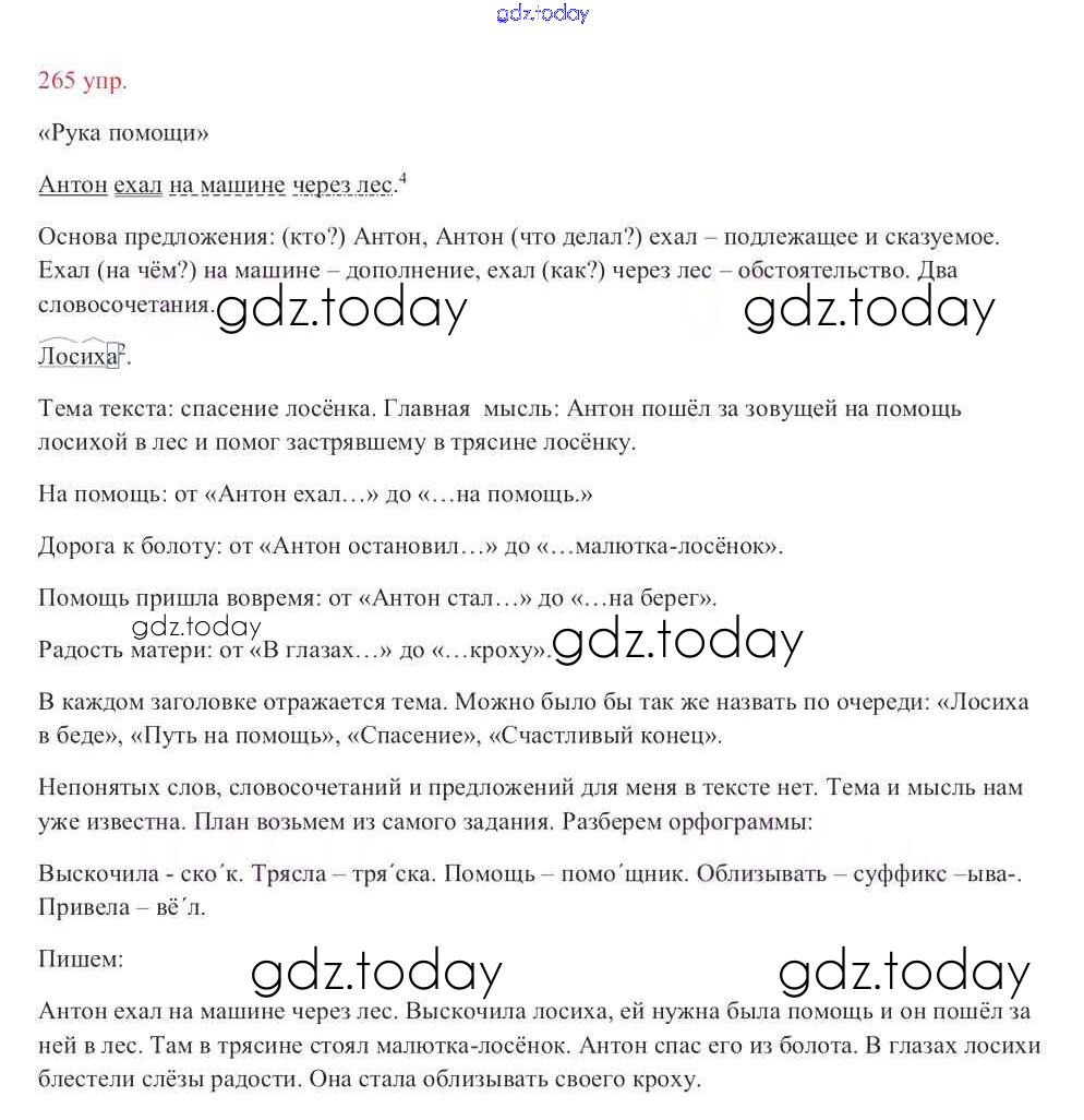 На страницах сайта gdz.today вы найдете учебный и вспомогательный материал, направленный на улучшения знаний школьной программы. ГДЗ - онлайн мир знаний Упражнения Часть 2 265 Учебнику по Русскому языку для 3 класса Канакина, Горецкий Просвещение Школа России 2013