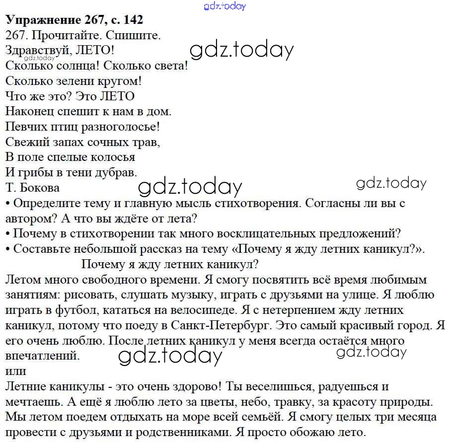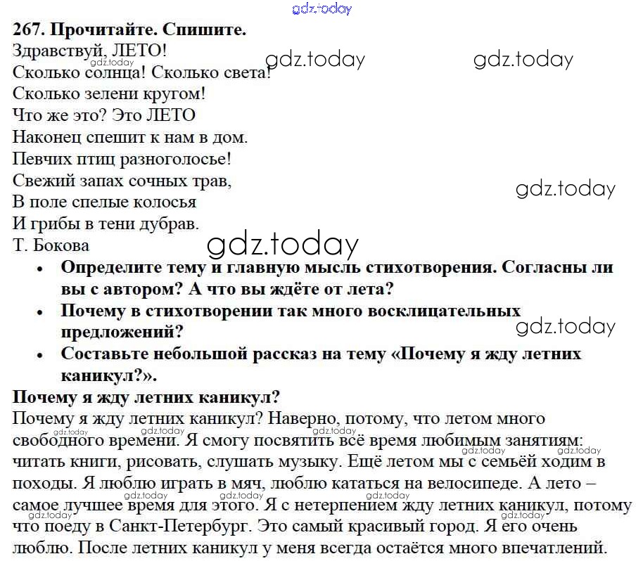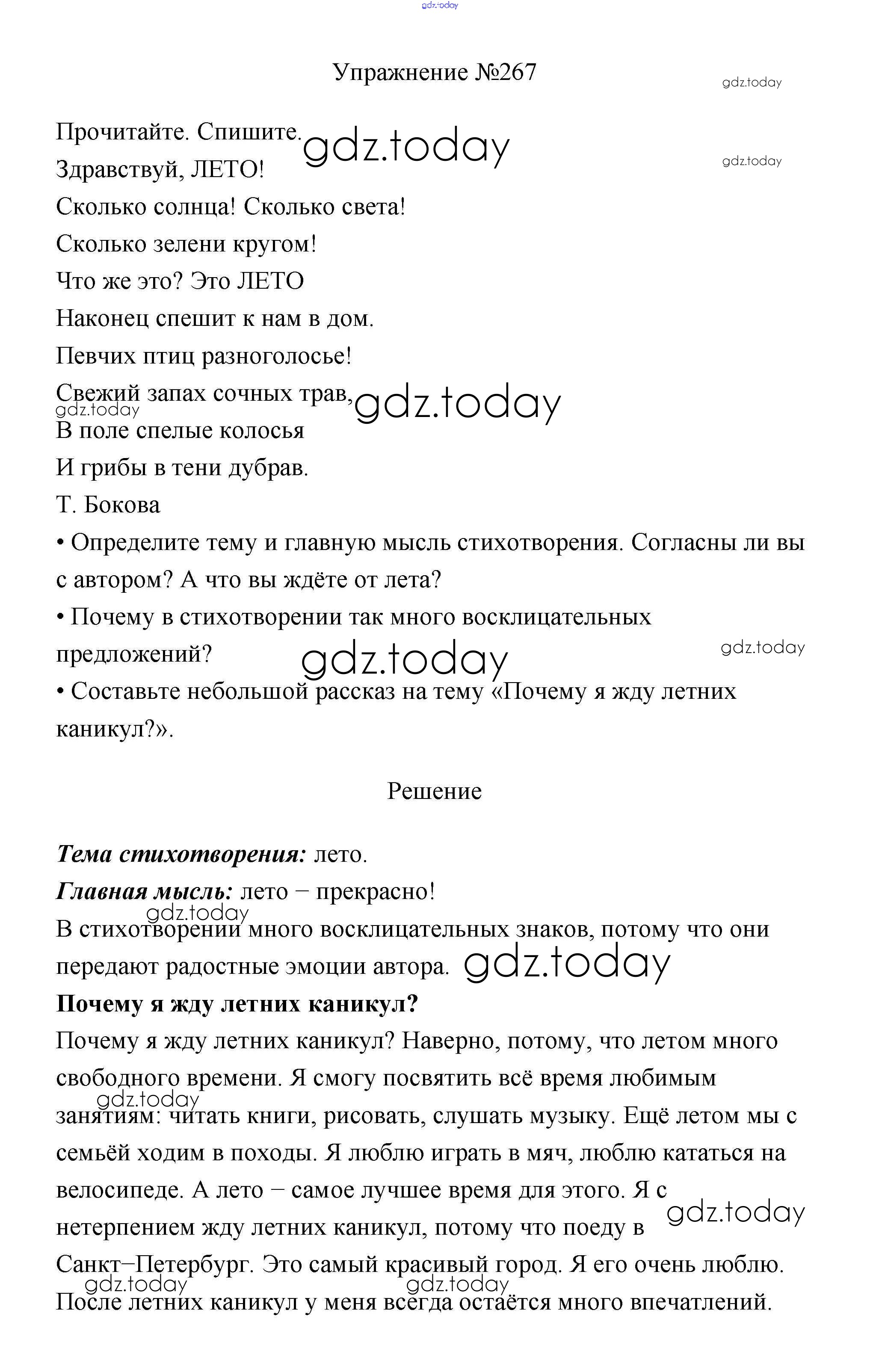 На страницах сайта gdz.today вы найдете учебный и вспомогательный материал, направленный на улучшения знаний школьной программы. ГДЗ - онлайн мир знаний Упражнения Часть 2 267 Учебнику по Русскому языку для 3 класса Канакина, Горецкий Просвещение Школа России 2013