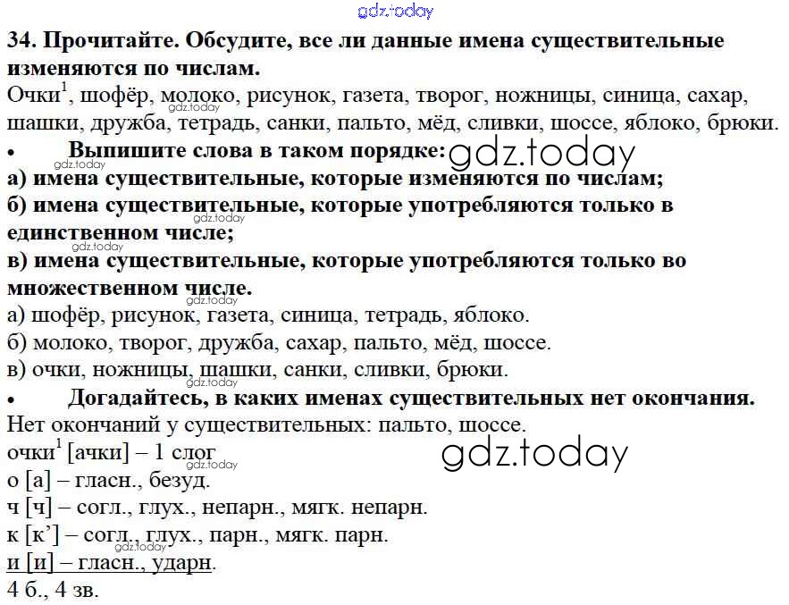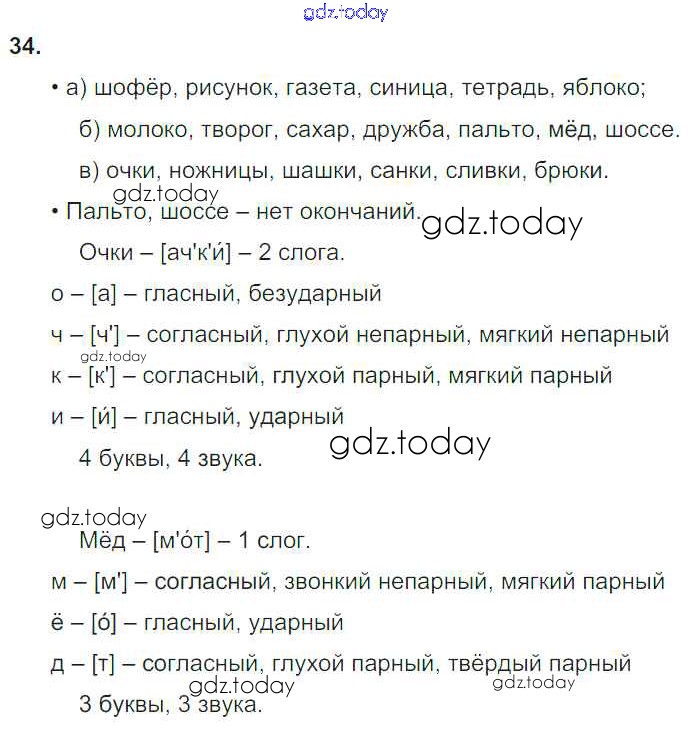 На страницах сайта gdz.today вы найдете учебный и вспомогательный материал, направленный на улучшения знаний школьной программы. ГДЗ - онлайн мир знаний Упражнения Часть 2 34 Учебнику по Русскому языку для 3 класса Канакина, Горецкий Просвещение Школа России 2013