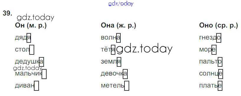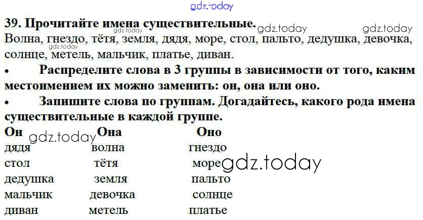 На страницах сайта gdz.today вы найдете учебный и вспомогательный материал, направленный на улучшения знаний школьной программы. ГДЗ - онлайн мир знаний Упражнения Часть 2 39 Учебнику по Русскому языку для 3 класса Канакина, Горецкий Просвещение Школа России 2013