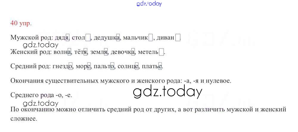 На страницах сайта gdz.today вы найдете учебный и вспомогательный материал, направленный на улучшения знаний школьной программы. ГДЗ - онлайн мир знаний Упражнения Часть 2 40 Учебнику по Русскому языку для 3 класса Канакина, Горецкий Просвещение Школа России 2013
