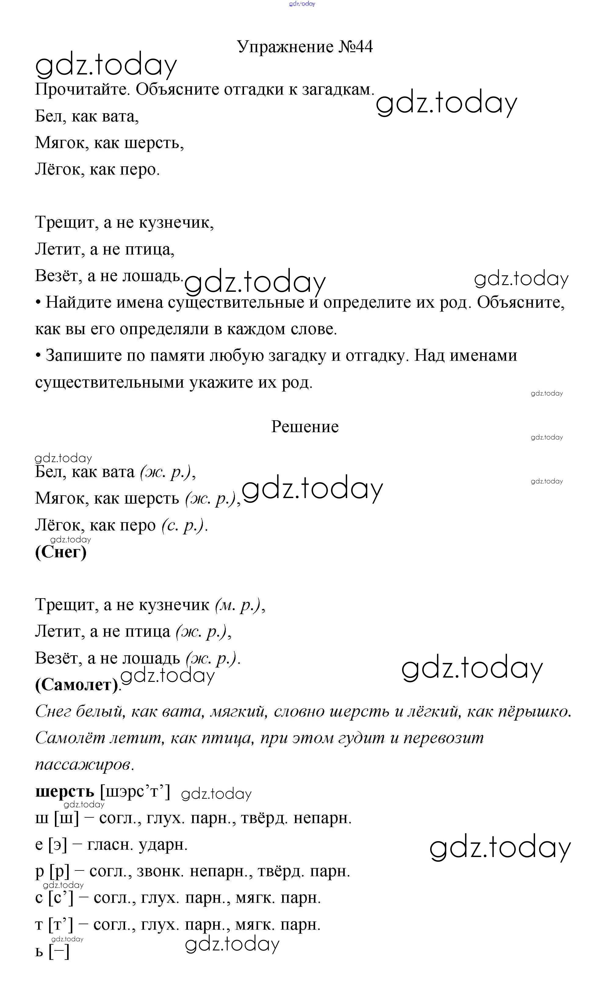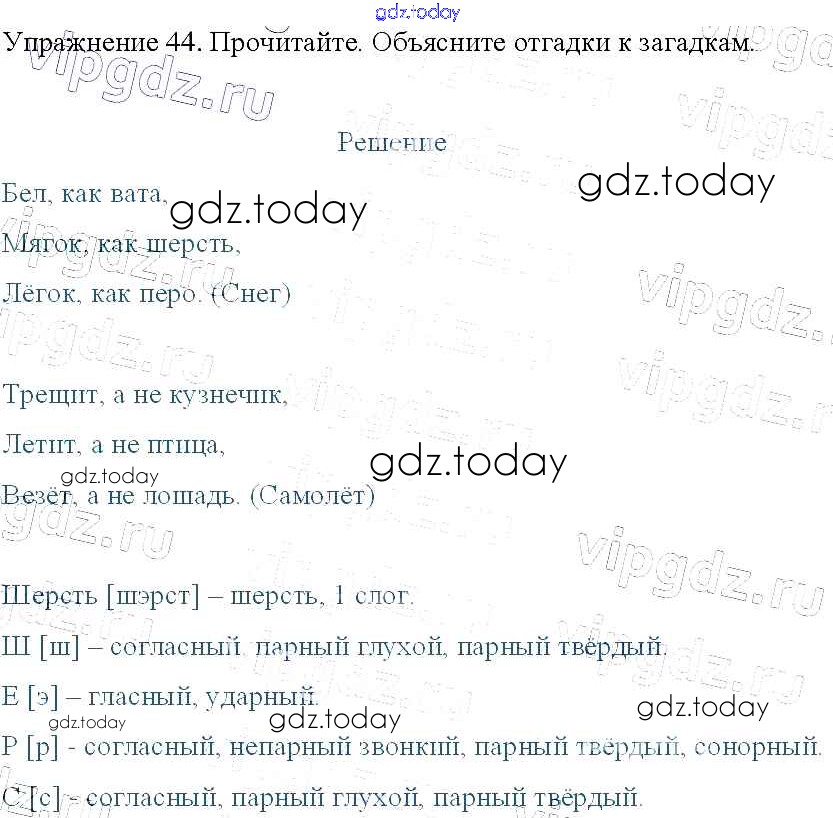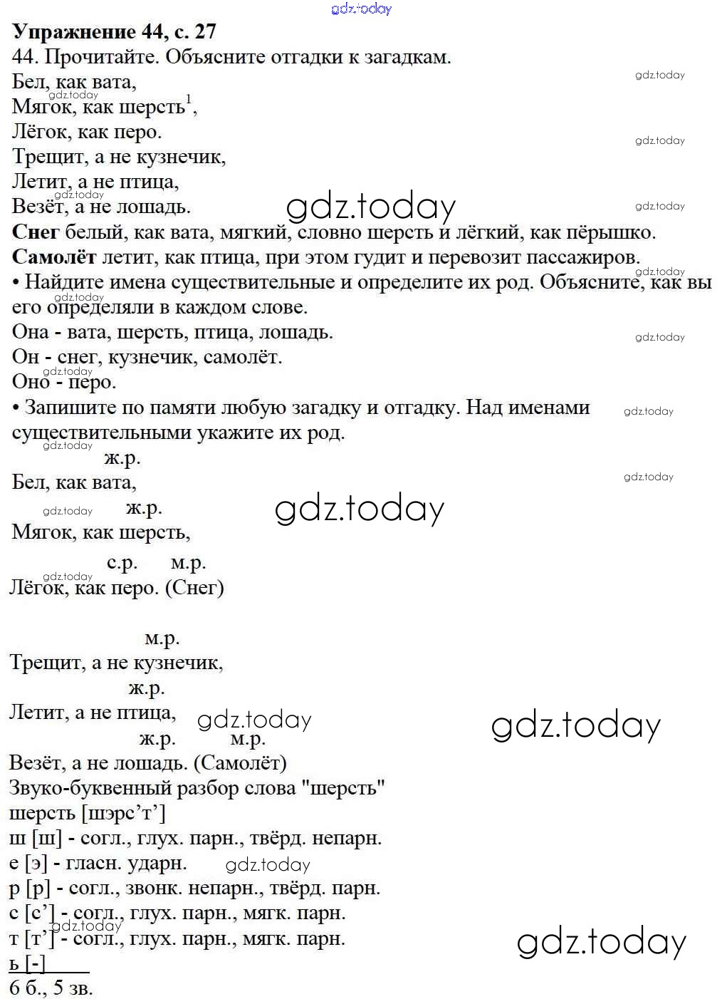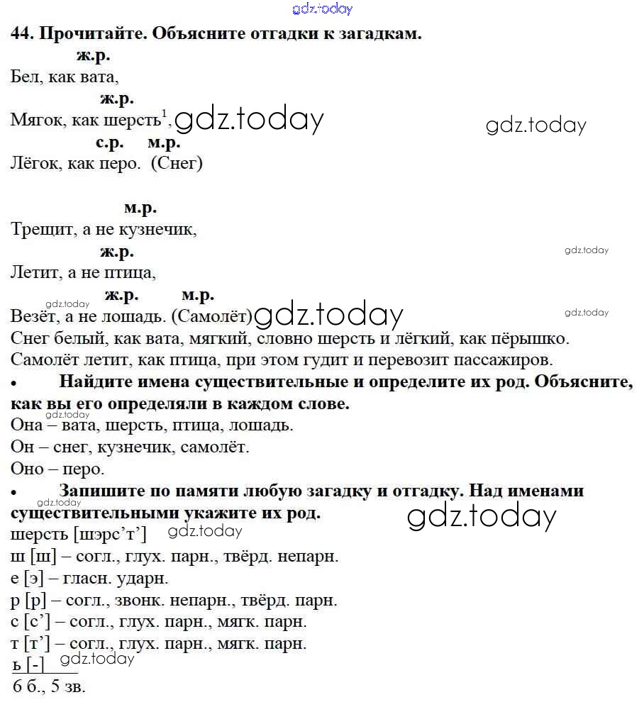 На страницах сайта gdz.today вы найдете учебный и вспомогательный материал, направленный на улучшения знаний школьной программы. ГДЗ - онлайн мир знаний Упражнения Часть 2 44 Учебнику по Русскому языку для 3 класса Канакина, Горецкий Просвещение Школа России 2013