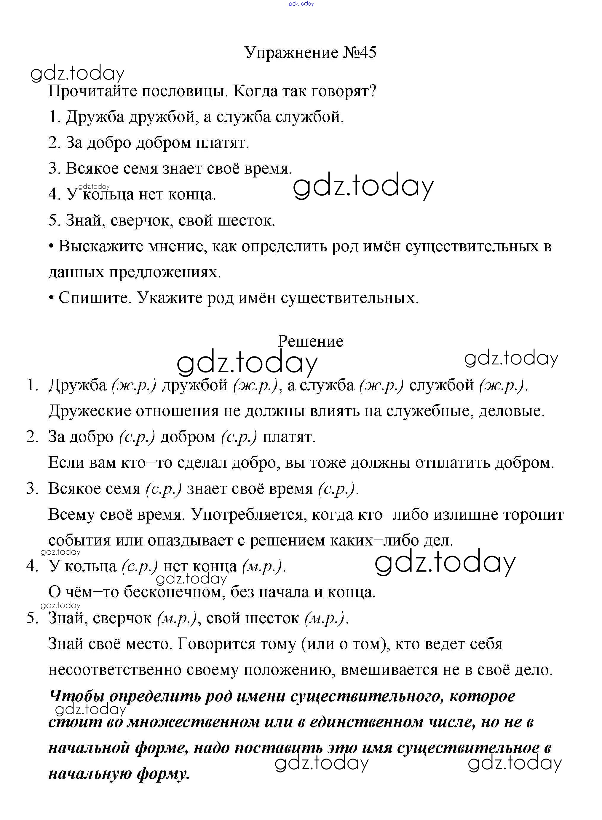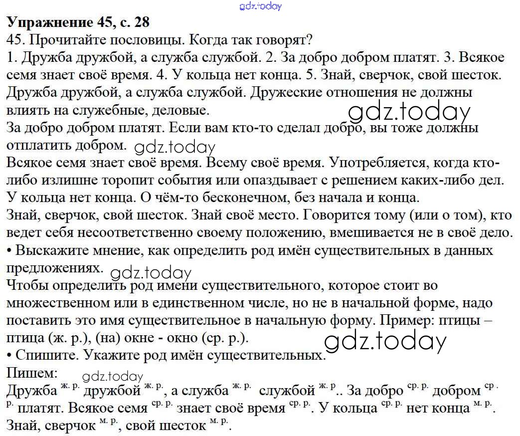 На страницах сайта gdz.today вы найдете учебный и вспомогательный материал, направленный на улучшения знаний школьной программы. ГДЗ - онлайн мир знаний Упражнения Часть 2 45 Учебнику по Русскому языку для 3 класса Канакина, Горецкий Просвещение Школа России 2013