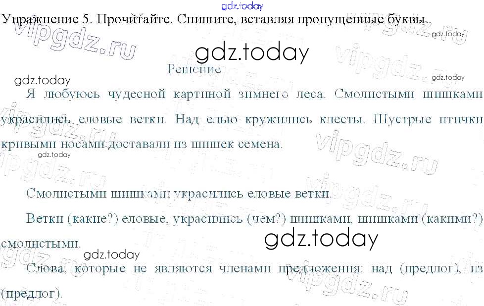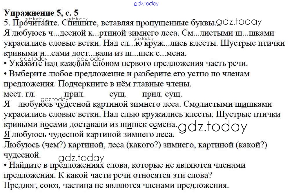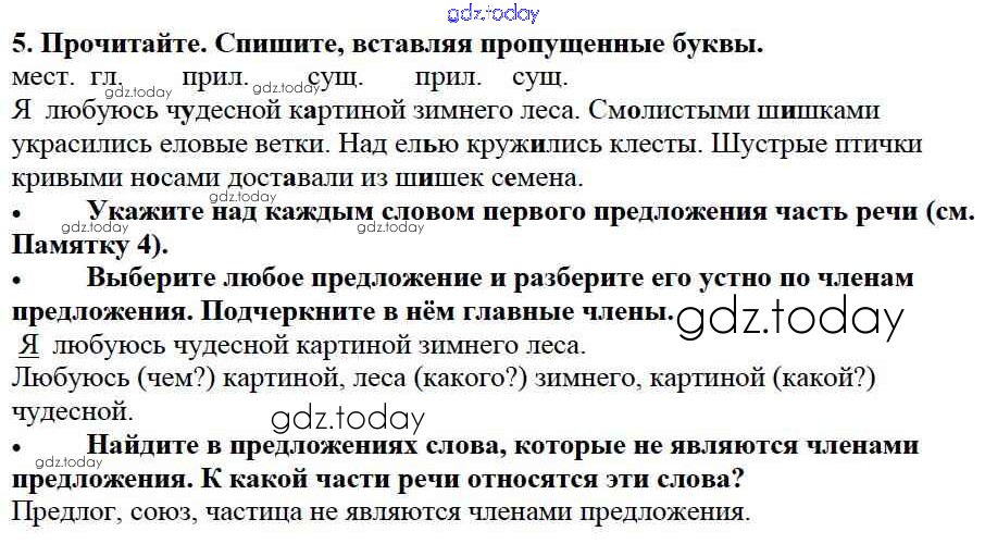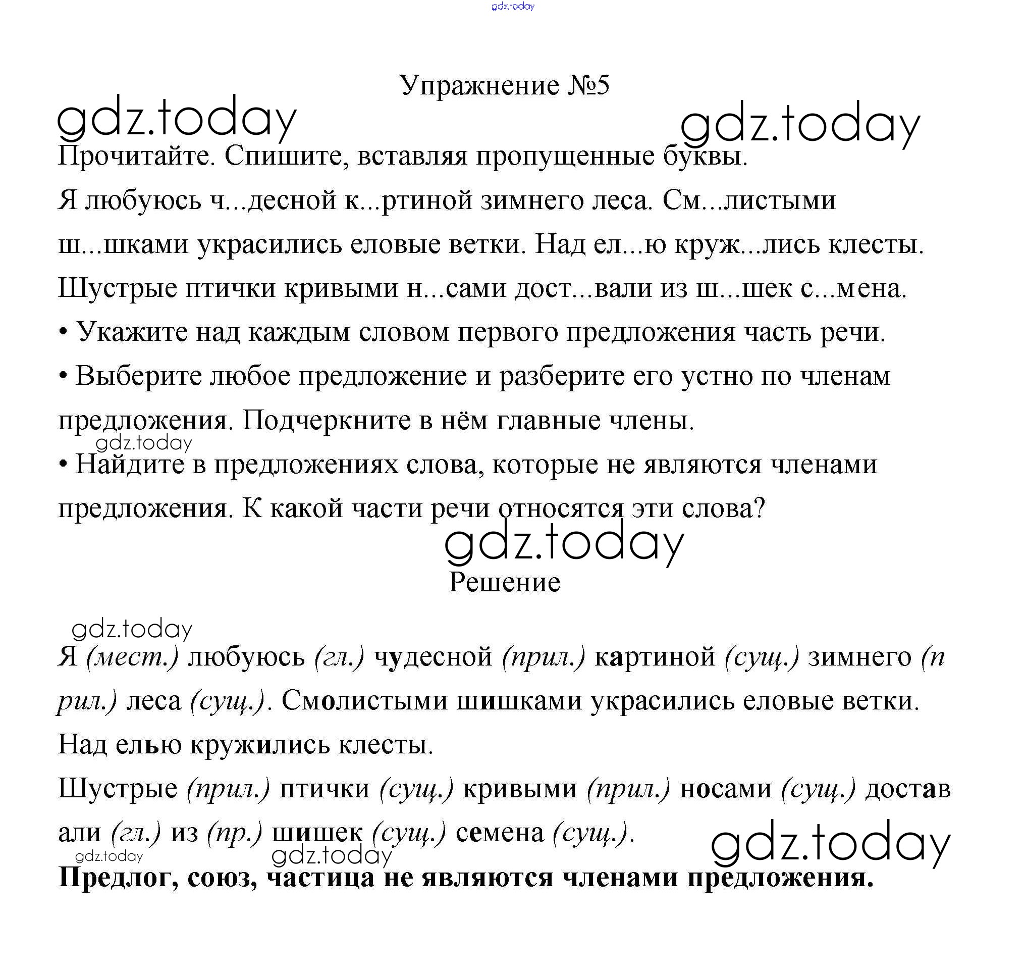 На страницах сайта gdz.today вы найдете учебный и вспомогательный материал, направленный на улучшения знаний школьной программы. ГДЗ - онлайн мир знаний Упражнения Часть 2 5 Учебнику по Русскому языку для 3 класса Канакина, Горецкий Просвещение Школа России 2013