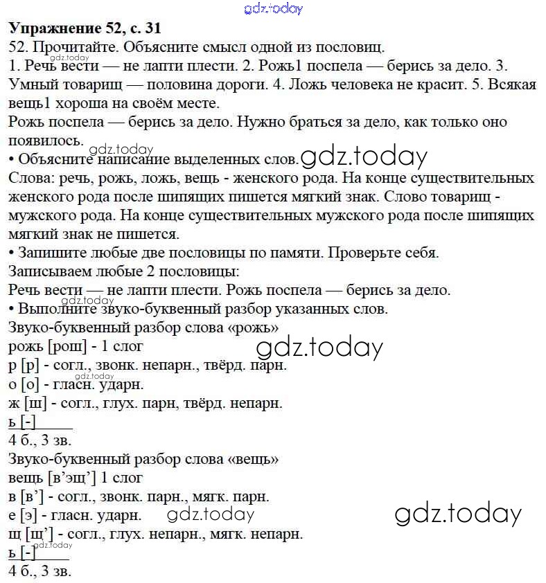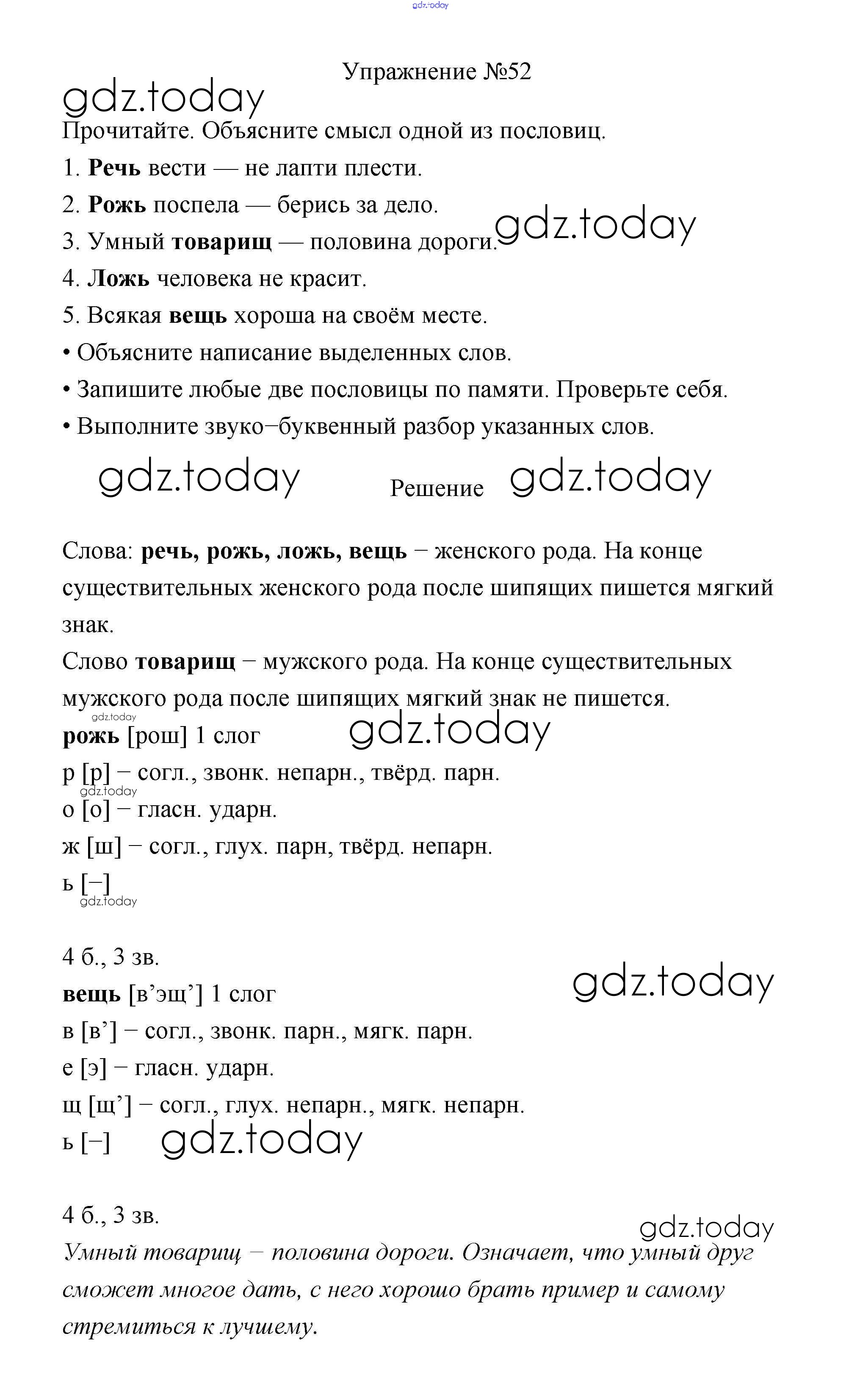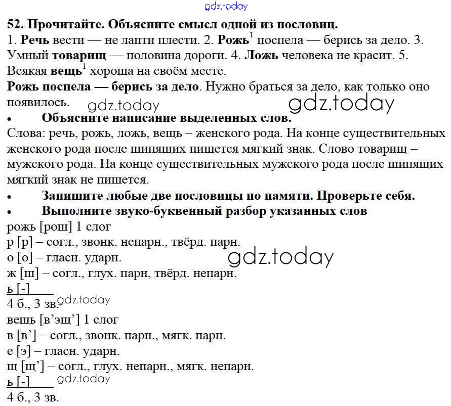 На страницах сайта gdz.today вы найдете учебный и вспомогательный материал, направленный на улучшения знаний школьной программы. ГДЗ - онлайн мир знаний Упражнения Часть 2 52 Учебнику по Русскому языку для 3 класса Канакина, Горецкий Просвещение Школа России 2013