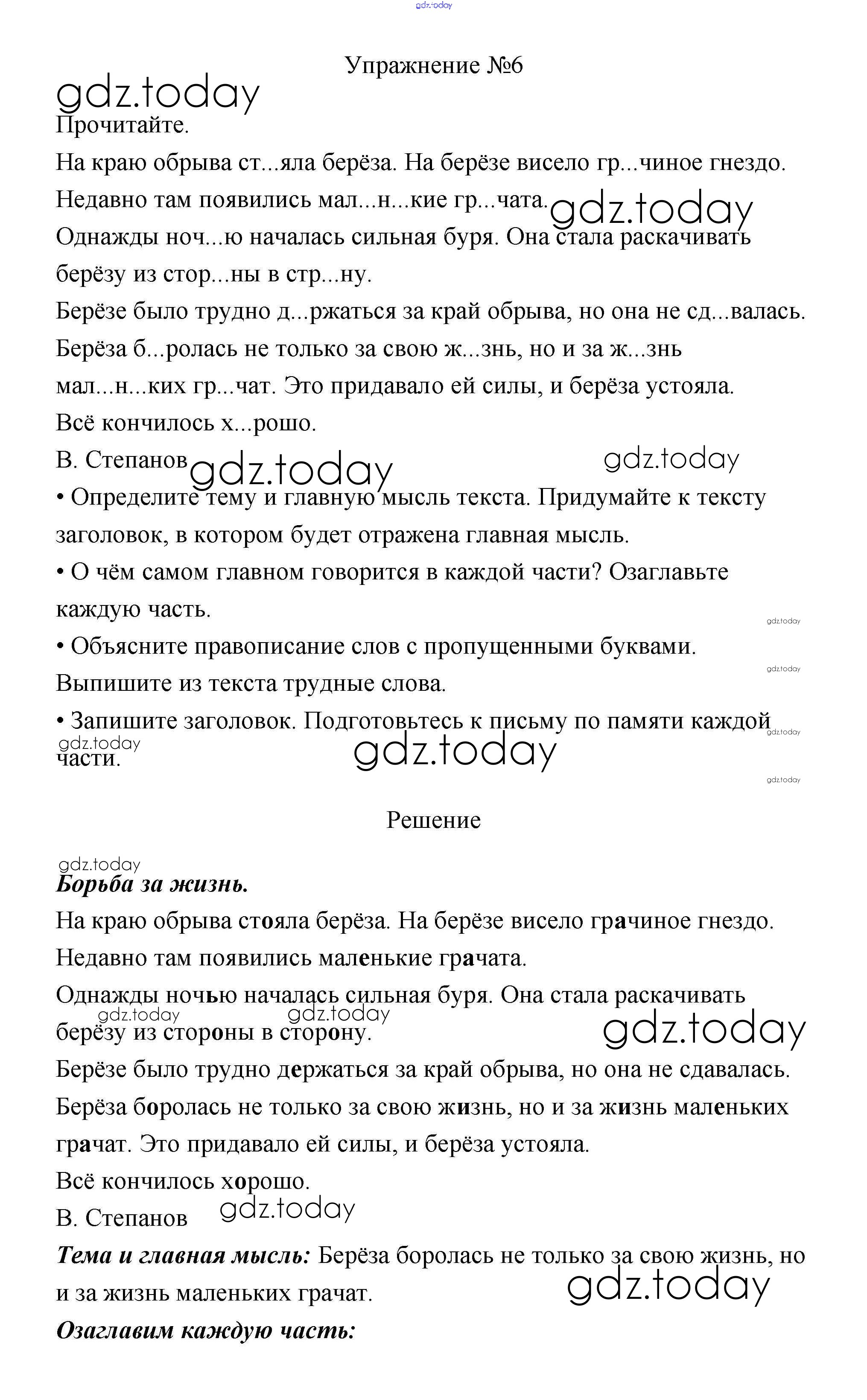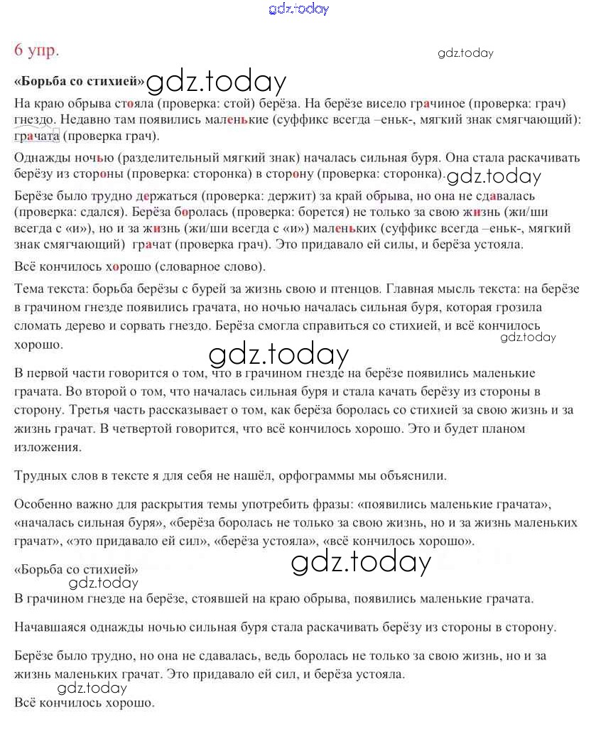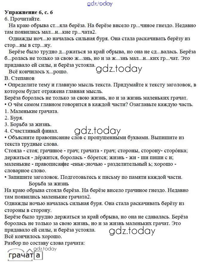 На страницах сайта gdz.today вы найдете учебный и вспомогательный материал, направленный на улучшения знаний школьной программы. ГДЗ - онлайн мир знаний Упражнения Часть 2 6 Учебнику по Русскому языку для 3 класса Канакина, Горецкий Просвещение Школа России 2013