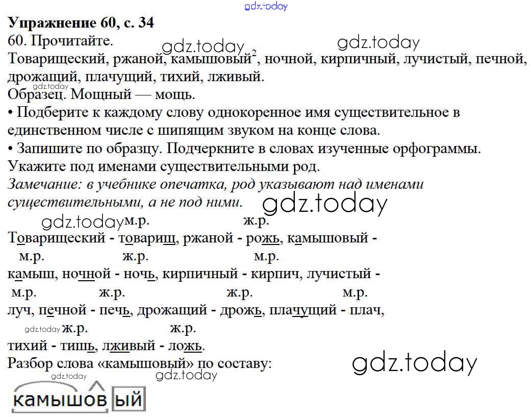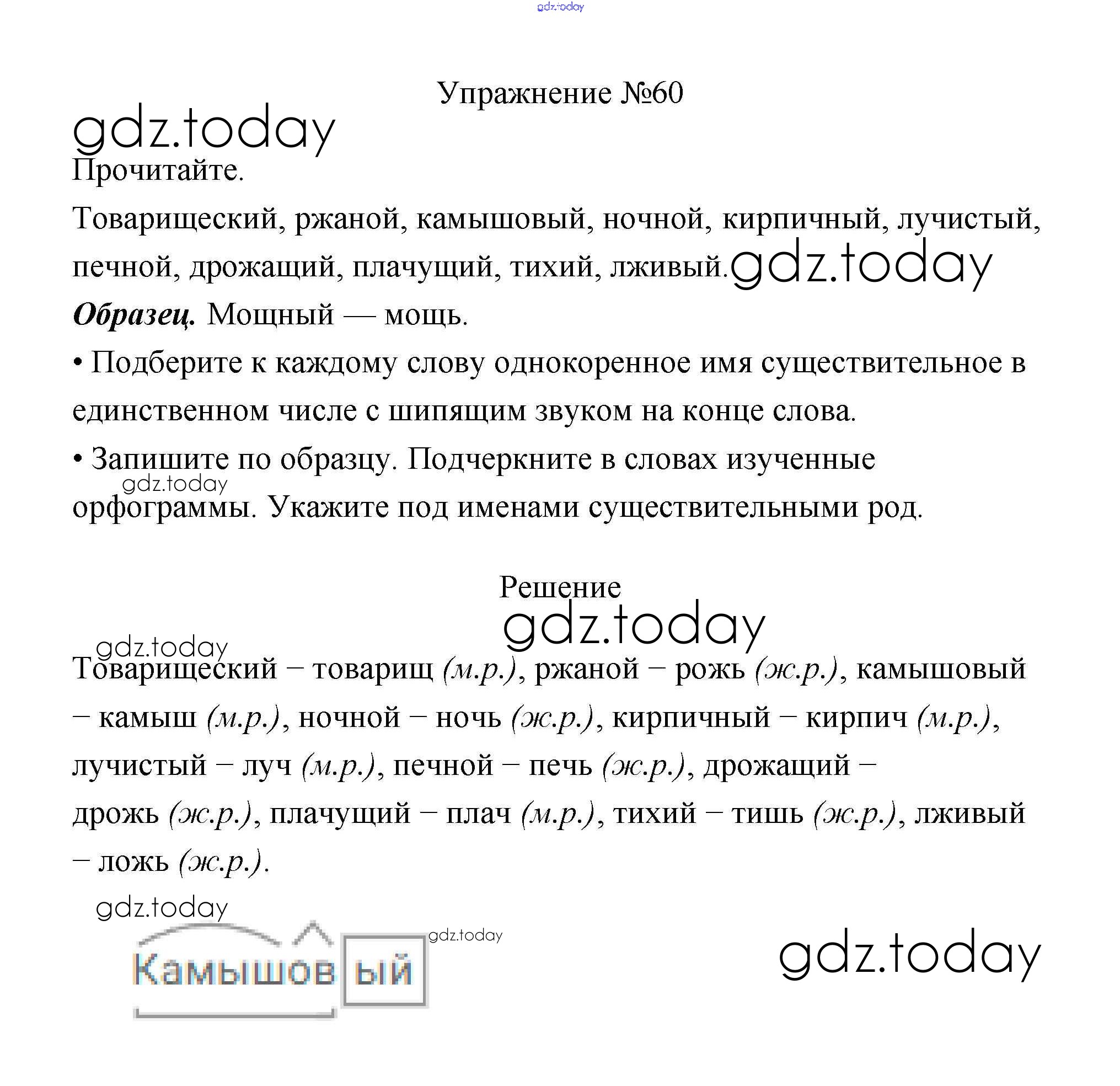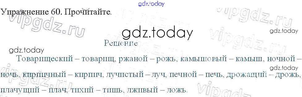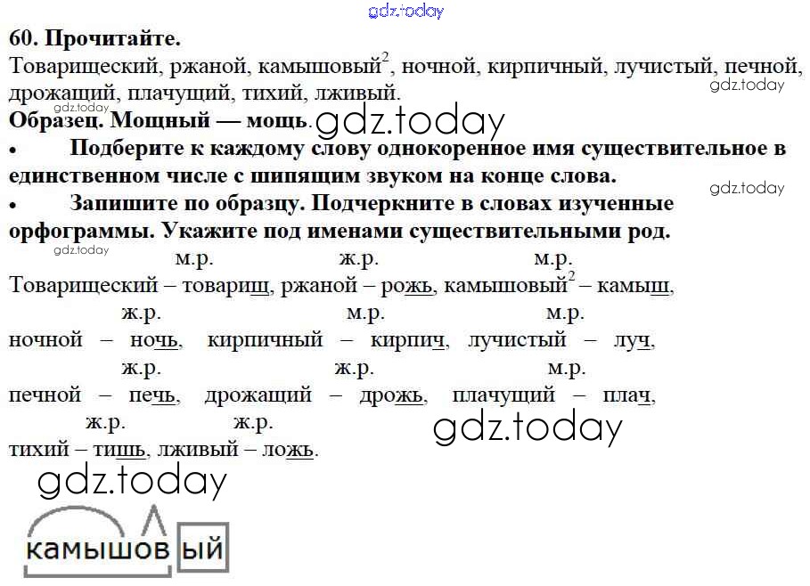На страницах сайта gdz.today вы найдете учебный и вспомогательный материал, направленный на улучшения знаний школьной программы. ГДЗ - онлайн мир знаний Упражнения Часть 2 60 Учебнику по Русскому языку для 3 класса Канакина, Горецкий Просвещение Школа России 2013