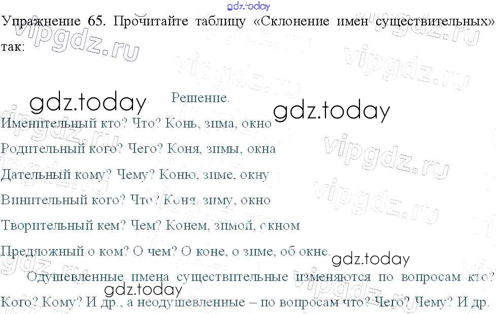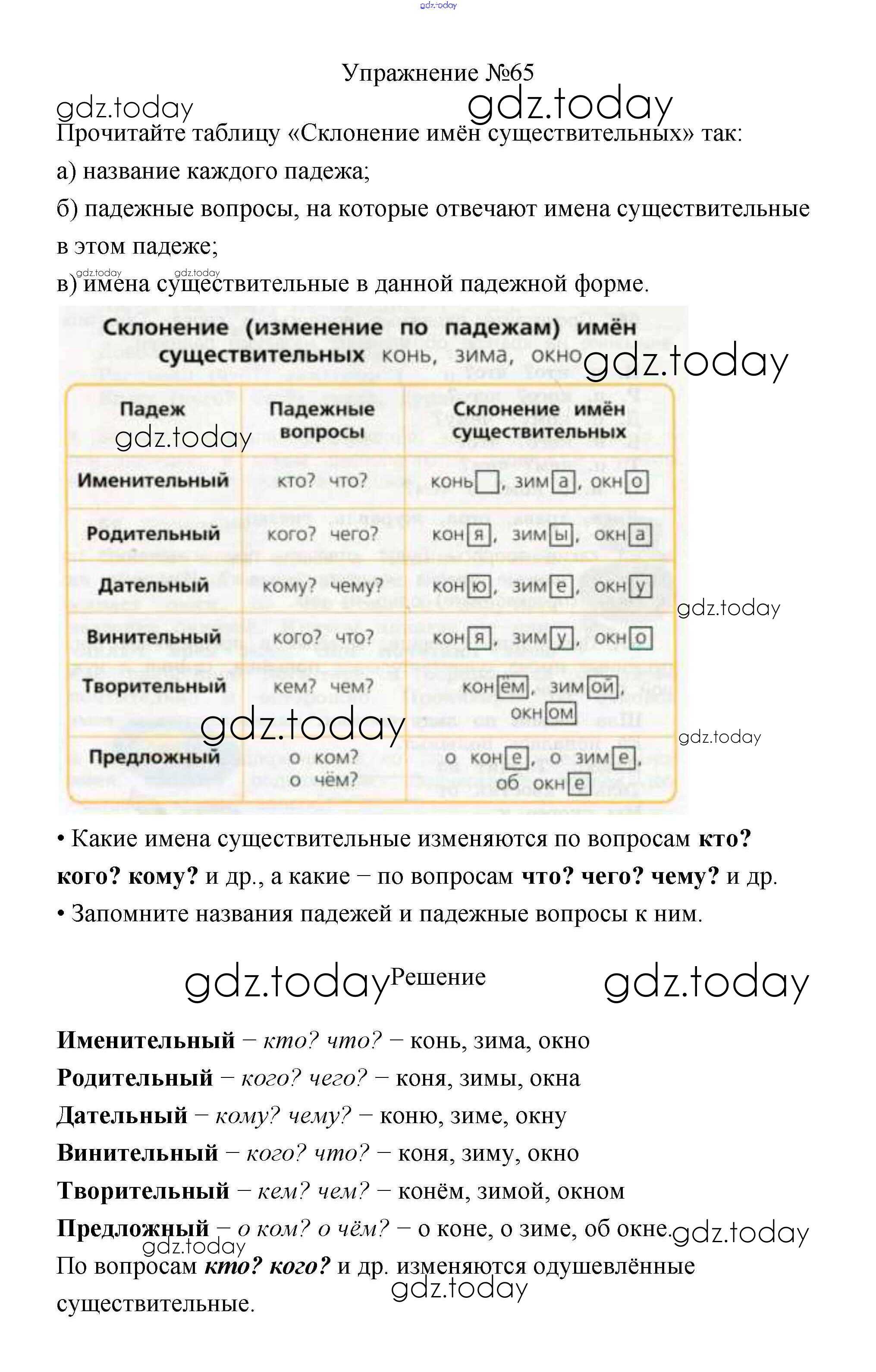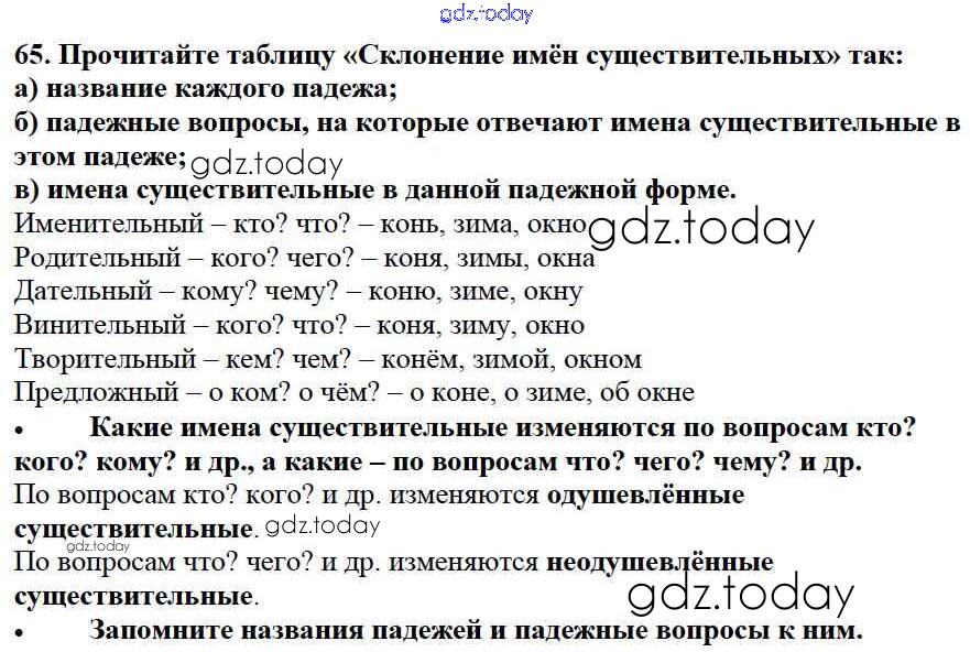 На страницах сайта gdz.today вы найдете учебный и вспомогательный материал, направленный на улучшения знаний школьной программы. ГДЗ - онлайн мир знаний Упражнения Часть 2 65 Учебнику по Русскому языку для 3 класса Канакина, Горецкий Просвещение Школа России 2013