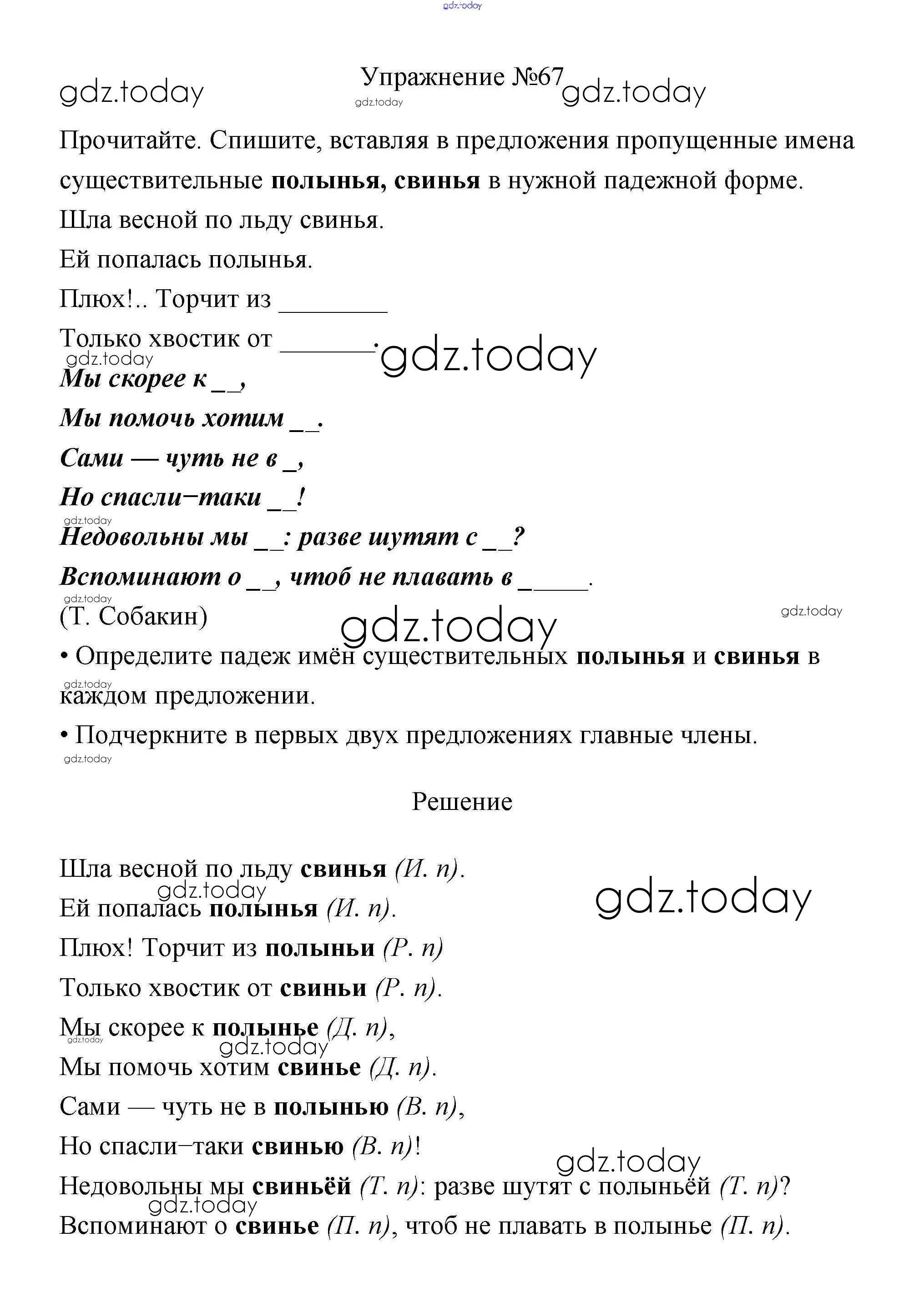 На страницах сайта gdz.today вы найдете учебный и вспомогательный материал, направленный на улучшения знаний школьной программы. ГДЗ - онлайн мир знаний Упражнения Часть 2 67 Учебнику по Русскому языку для 3 класса Канакина, Горецкий Просвещение Школа России 2013
