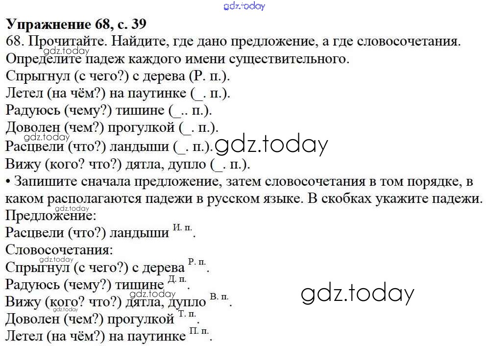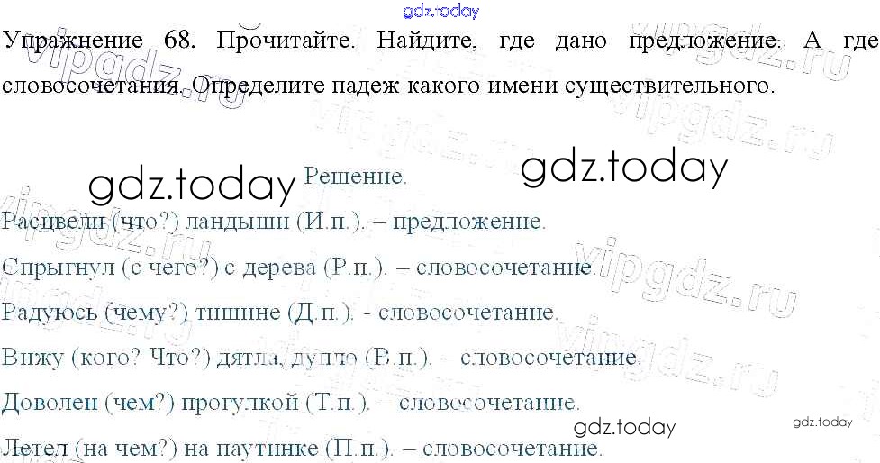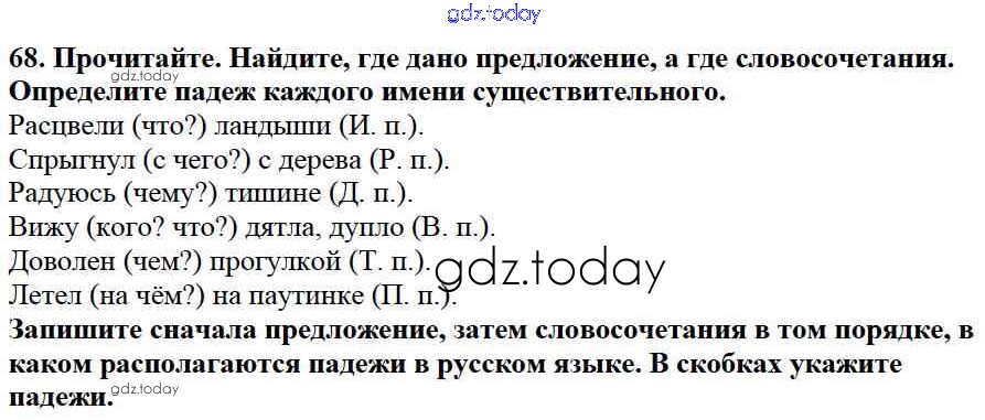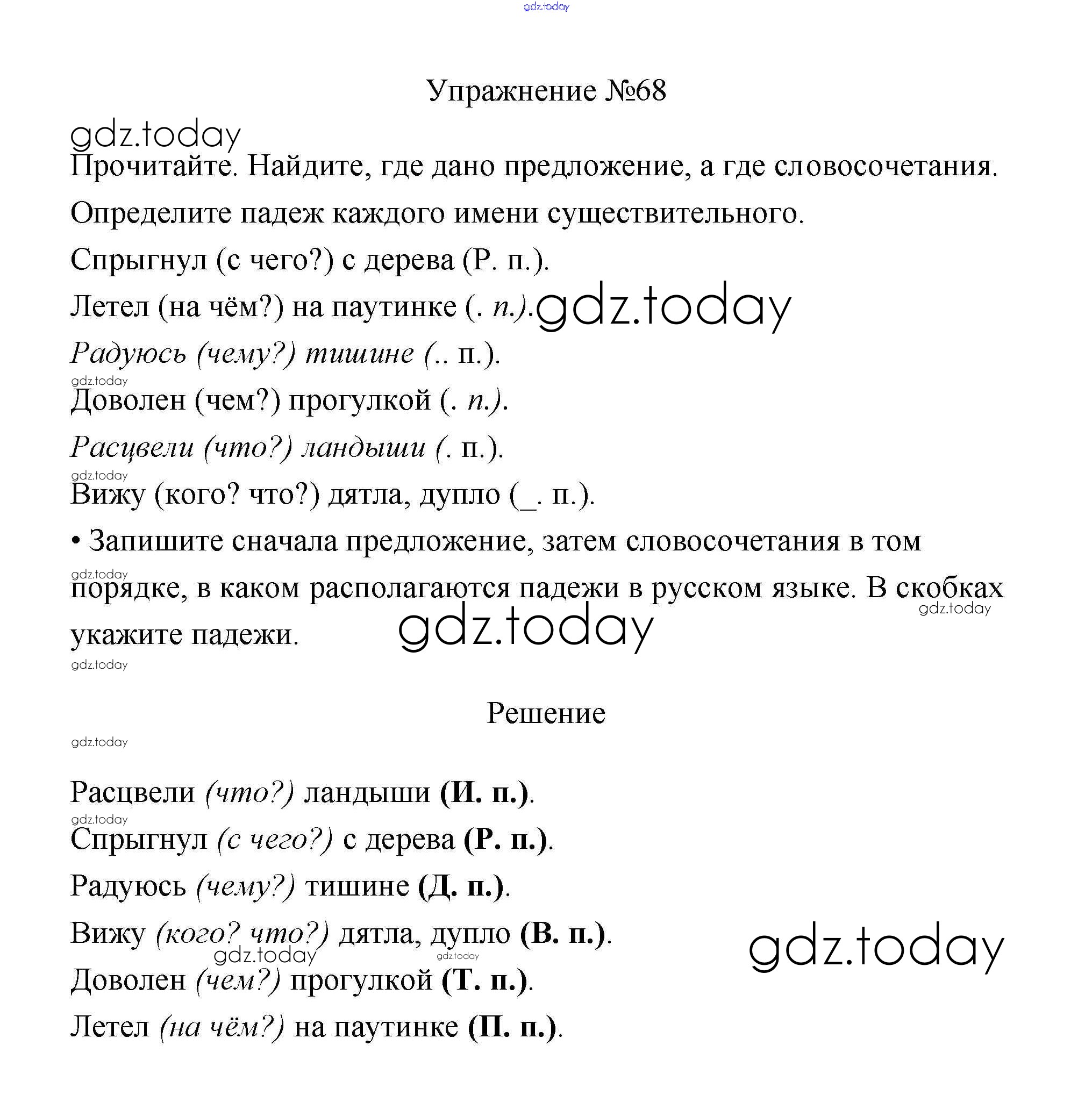 На страницах сайта gdz.today вы найдете учебный и вспомогательный материал, направленный на улучшения знаний школьной программы. ГДЗ - онлайн мир знаний Упражнения Часть 2 68 Учебнику по Русскому языку для 3 класса Канакина, Горецкий Просвещение Школа России 2013
