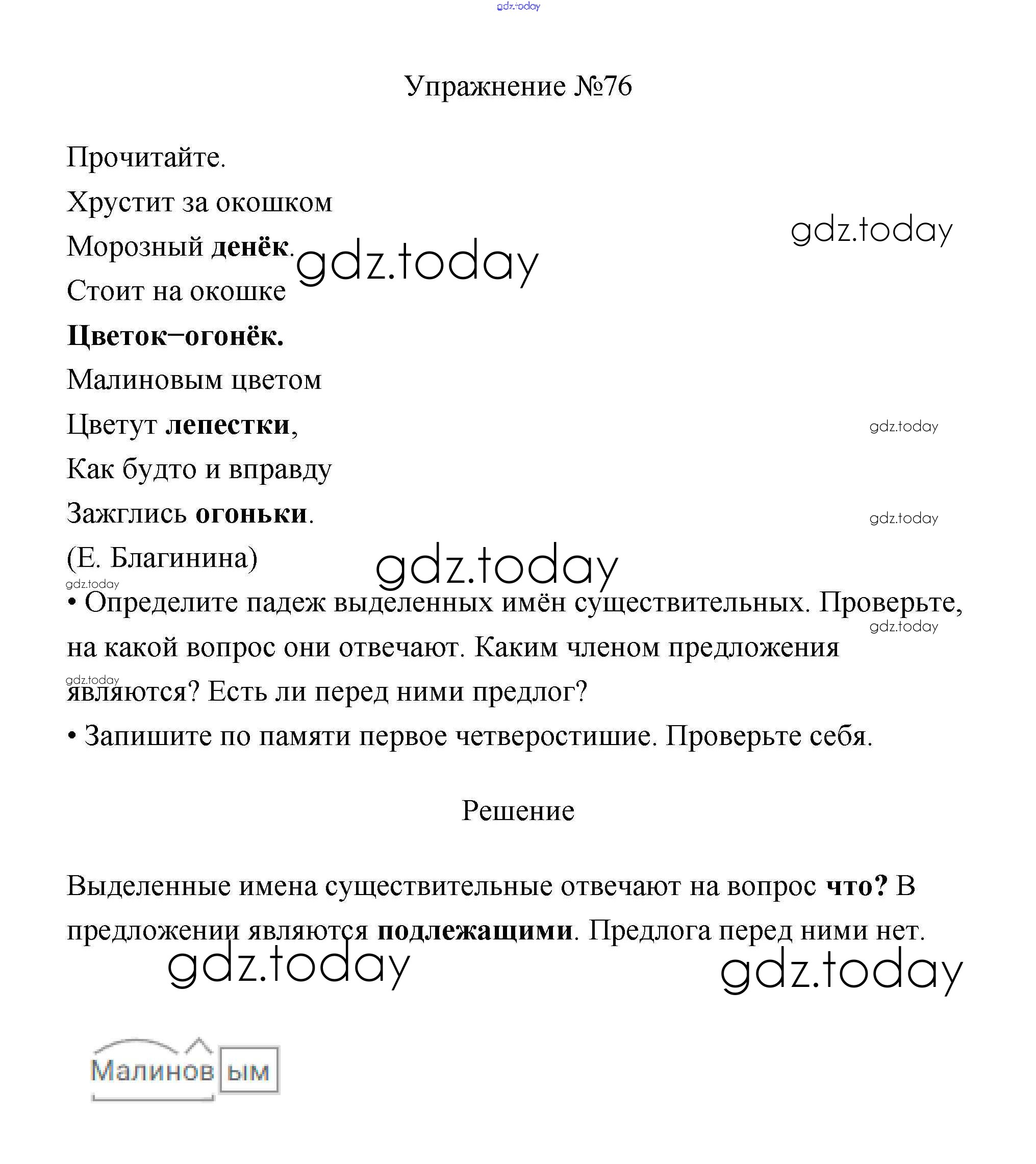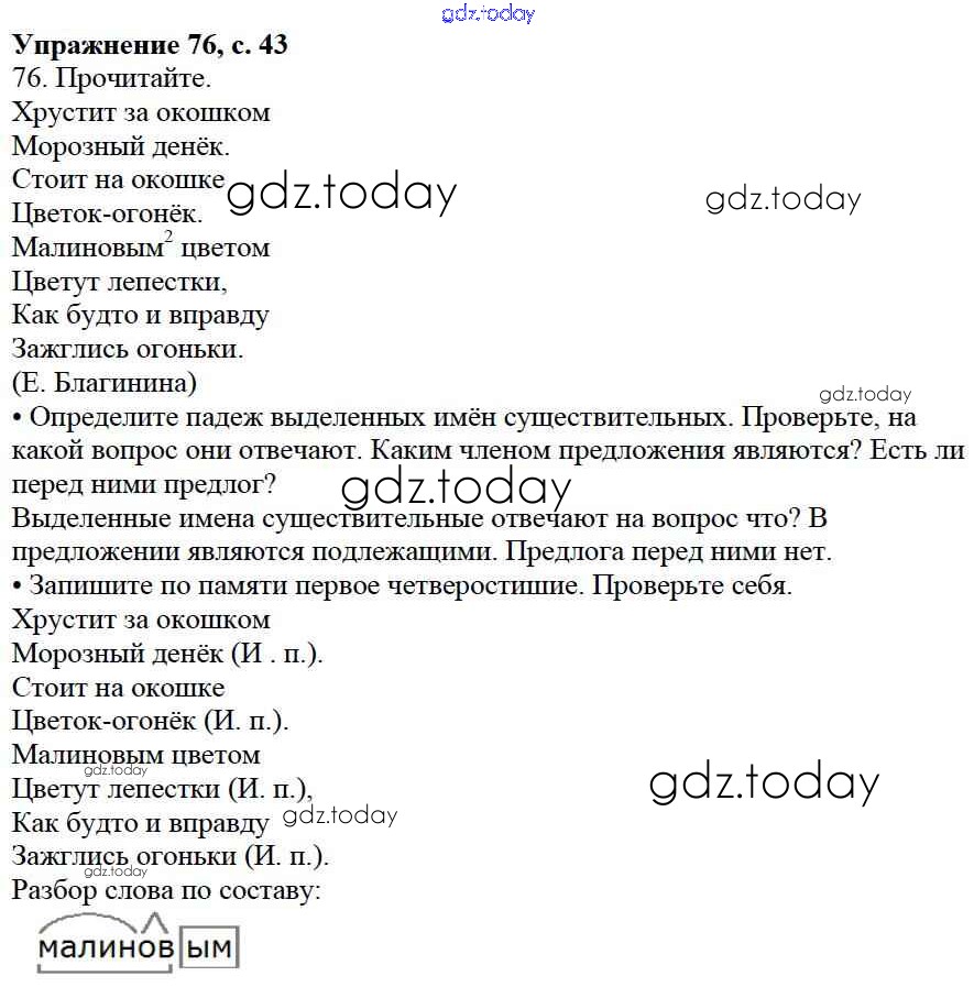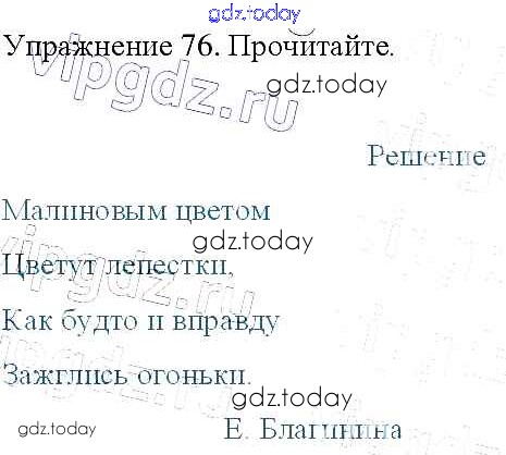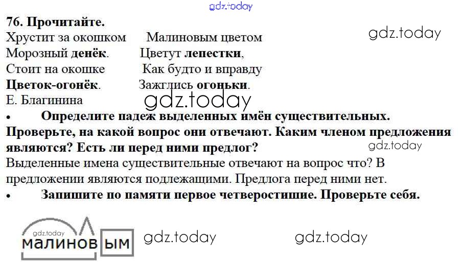 На страницах сайта gdz.today вы найдете учебный и вспомогательный материал, направленный на улучшения знаний школьной программы. ГДЗ - онлайн мир знаний Упражнения Часть 2 76 Учебнику по Русскому языку для 3 класса Канакина, Горецкий Просвещение Школа России 2013