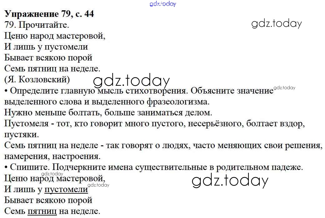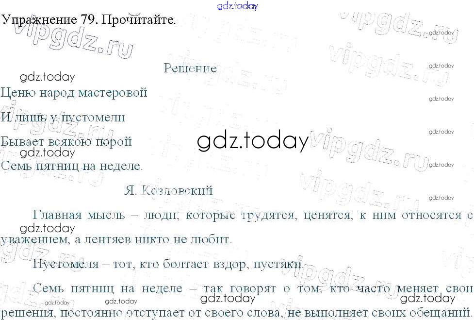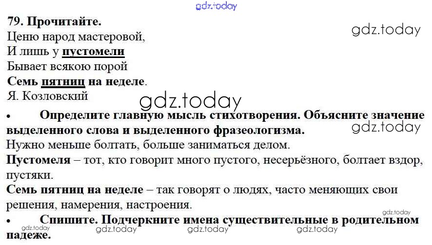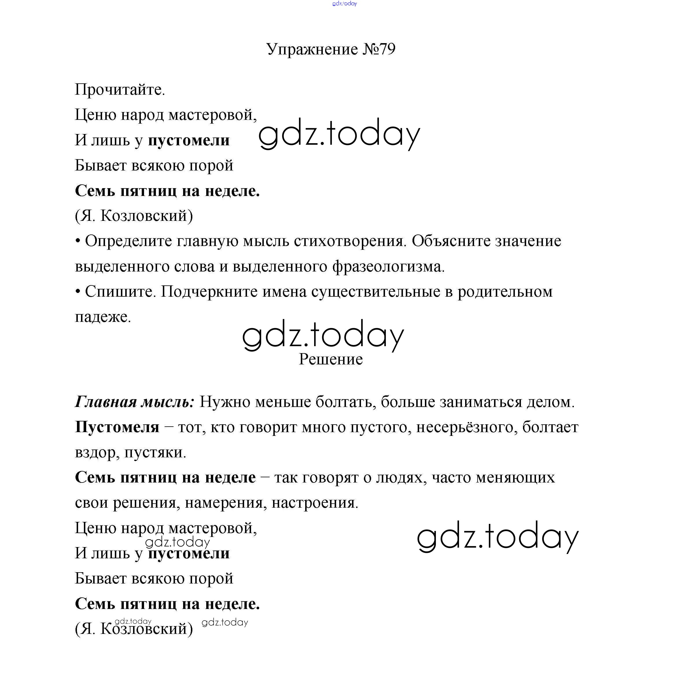 На страницах сайта gdz.today вы найдете учебный и вспомогательный материал, направленный на улучшения знаний школьной программы. ГДЗ - онлайн мир знаний Упражнения Часть 2 79 Учебнику по Русскому языку для 3 класса Канакина, Горецкий Просвещение Школа России 2013