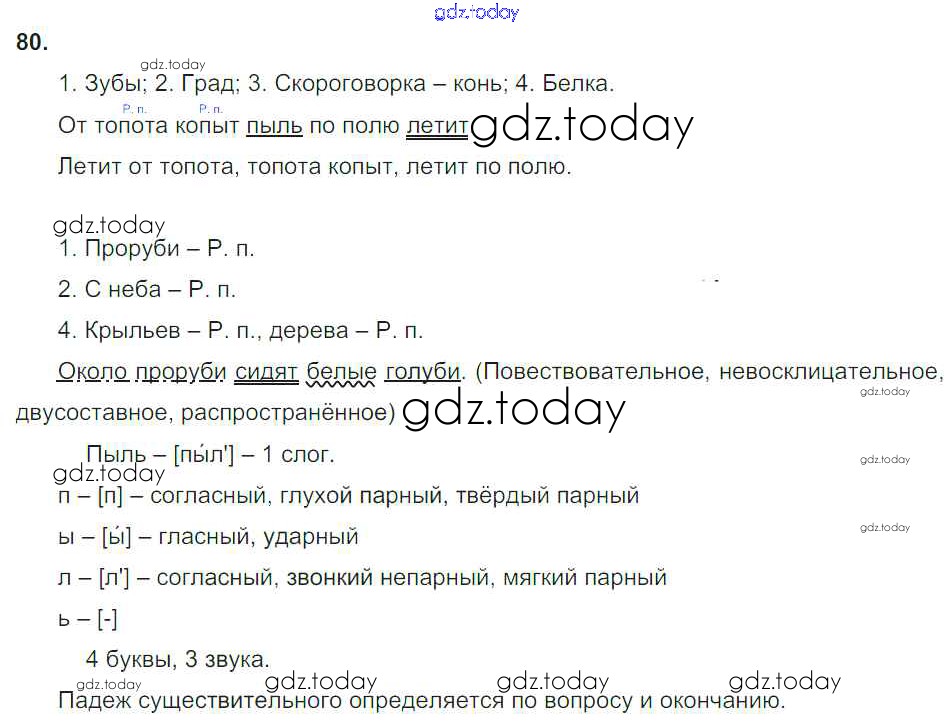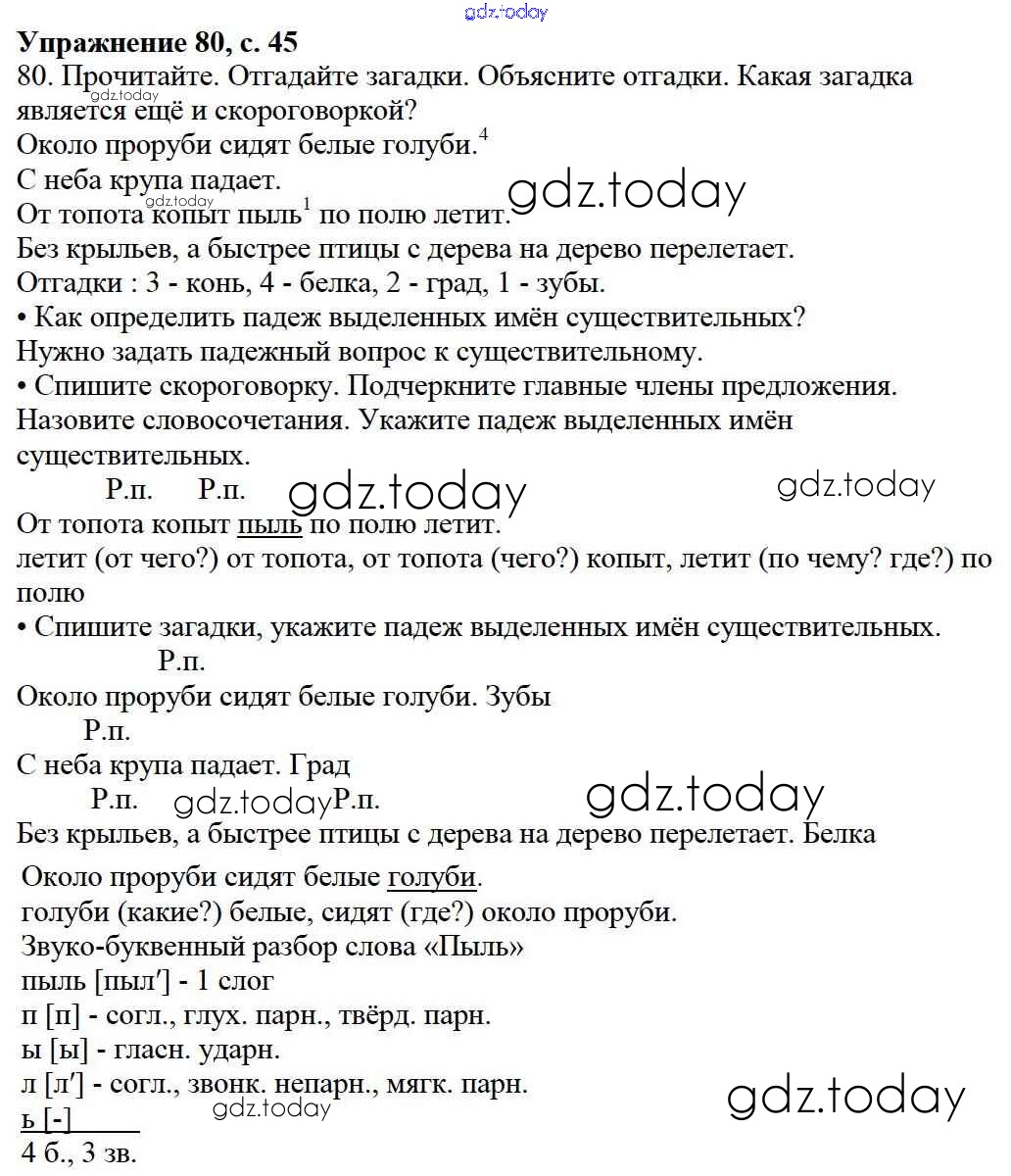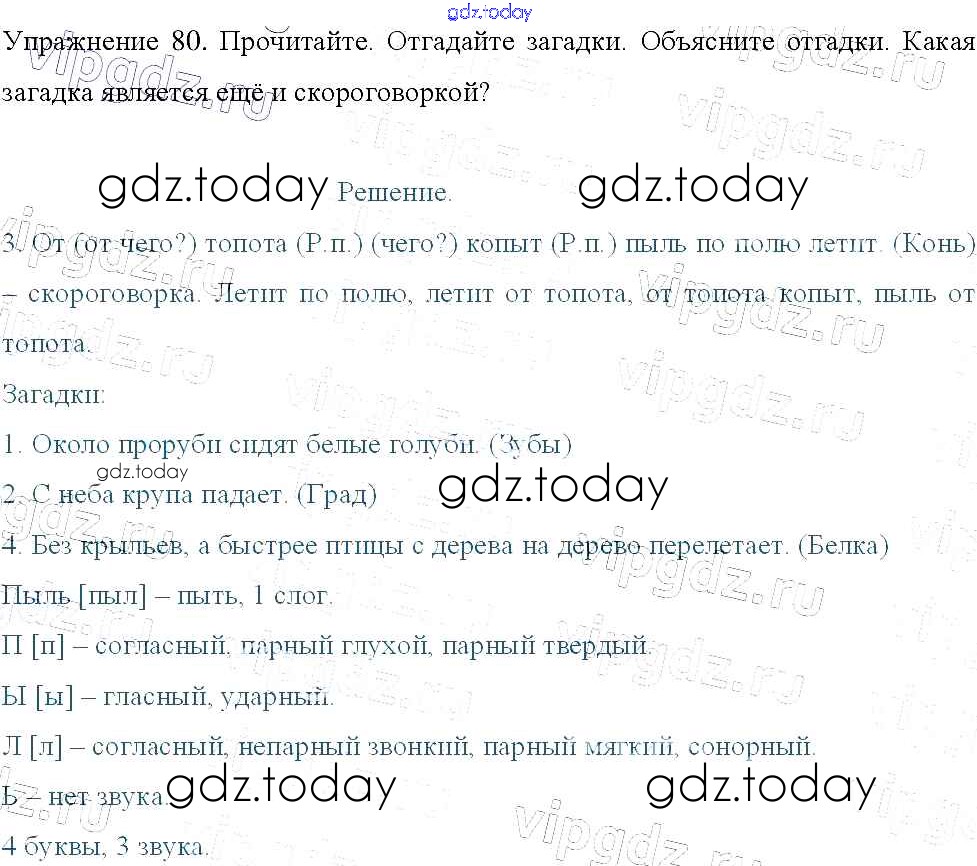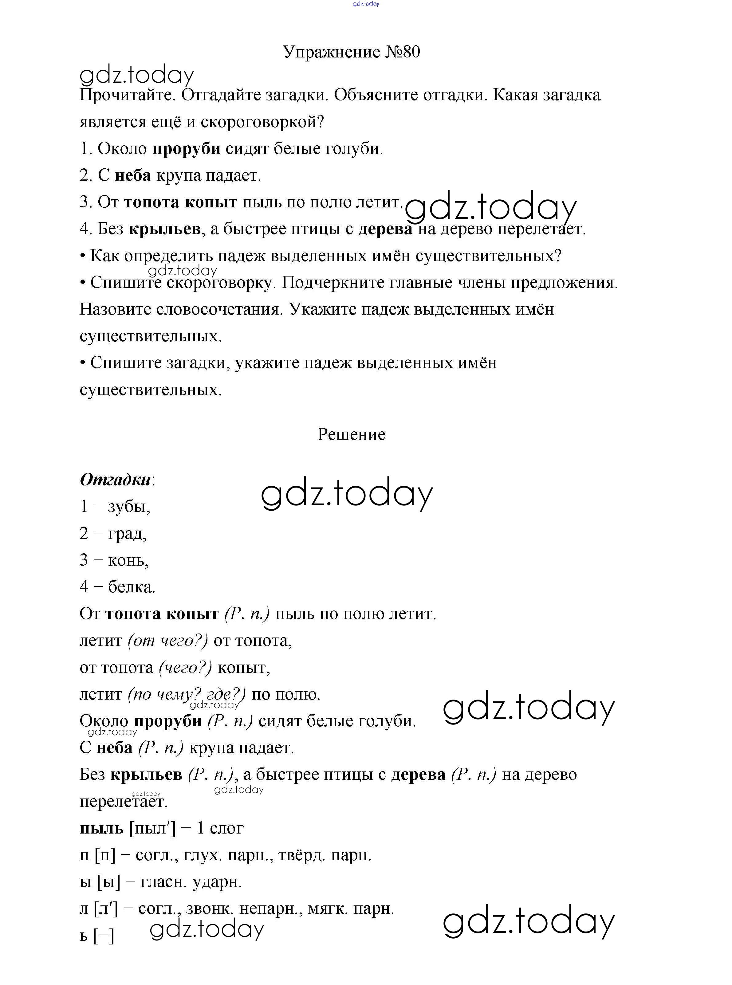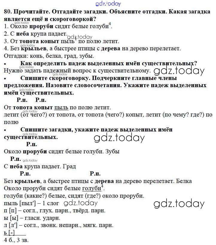 На страницах сайта gdz.today вы найдете учебный и вспомогательный материал, направленный на улучшения знаний школьной программы. ГДЗ - онлайн мир знаний Упражнения Часть 2 80 Учебнику по Русскому языку для 3 класса Канакина, Горецкий Просвещение Школа России 2013