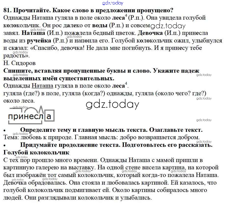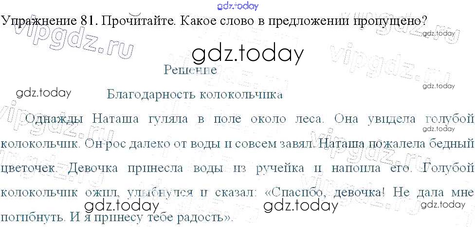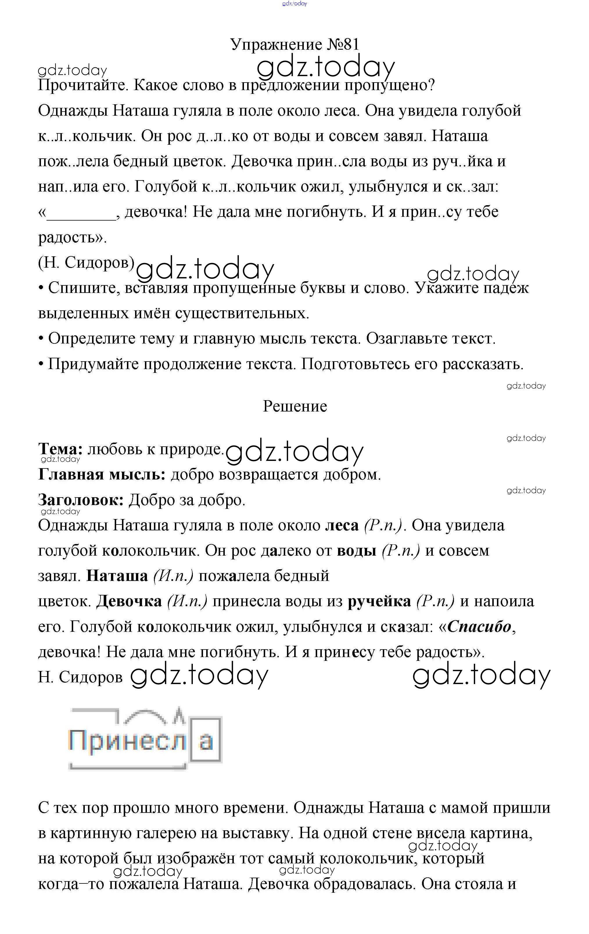 На страницах сайта gdz.today вы найдете учебный и вспомогательный материал, направленный на улучшения знаний школьной программы. ГДЗ - онлайн мир знаний Упражнения Часть 2 81 Учебнику по Русскому языку для 3 класса Канакина, Горецкий Просвещение Школа России 2013