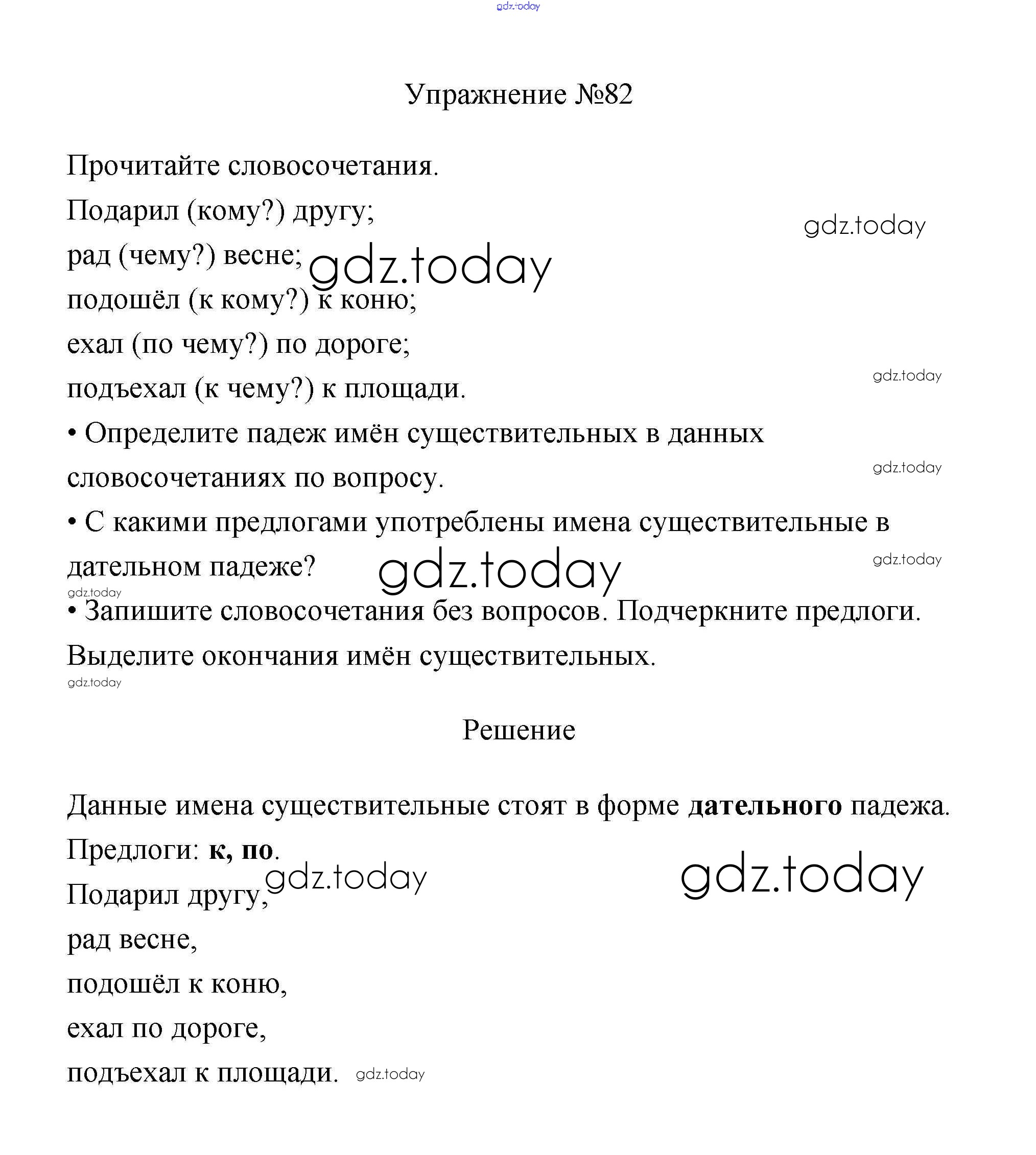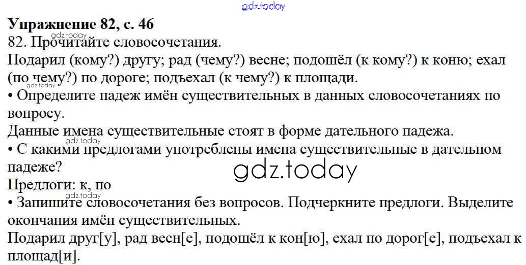 На страницах сайта gdz.today вы найдете учебный и вспомогательный материал, направленный на улучшения знаний школьной программы. ГДЗ - онлайн мир знаний Упражнения Часть 2 82 Учебнику по Русскому языку для 3 класса Канакина, Горецкий Просвещение Школа России 2013