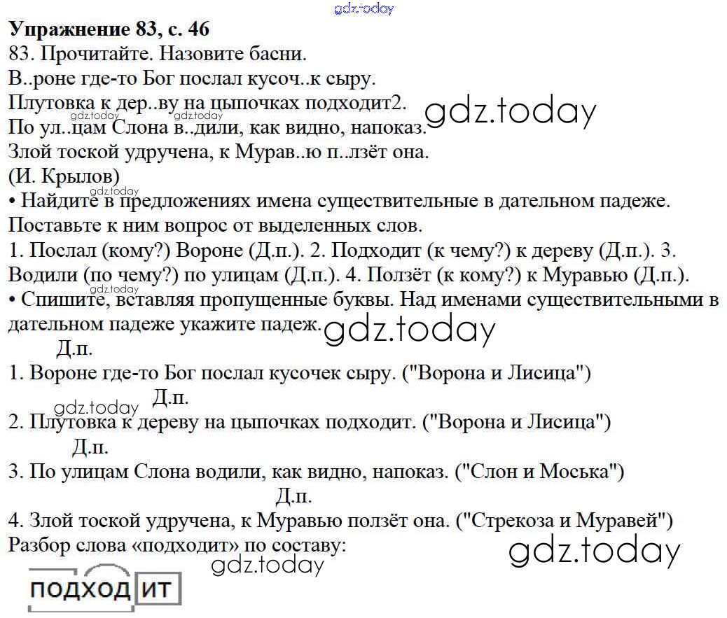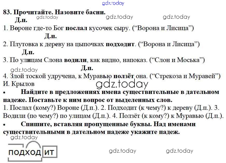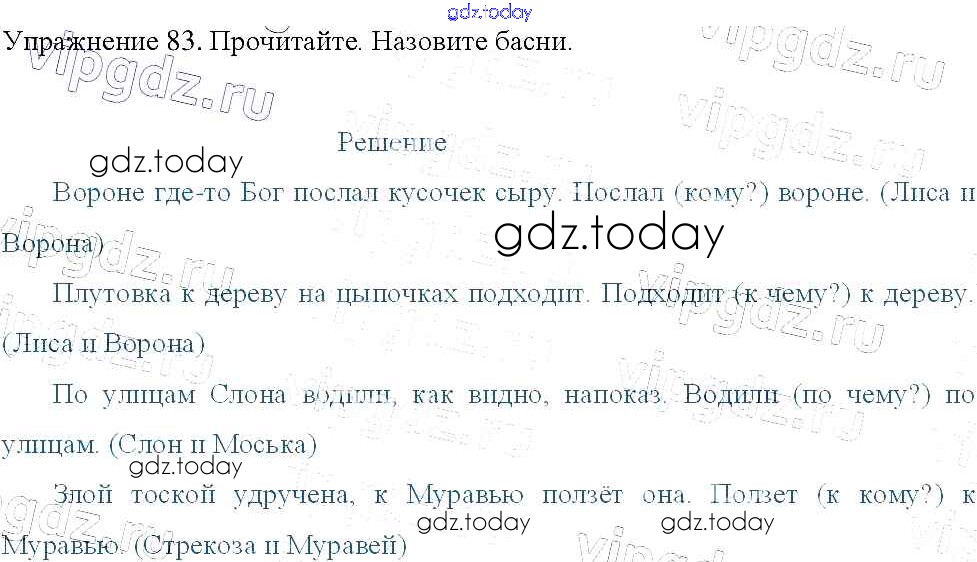 На страницах сайта gdz.today вы найдете учебный и вспомогательный материал, направленный на улучшения знаний школьной программы. ГДЗ - онлайн мир знаний Упражнения Часть 2 83 Учебнику по Русскому языку для 3 класса Канакина, Горецкий Просвещение Школа России 2013