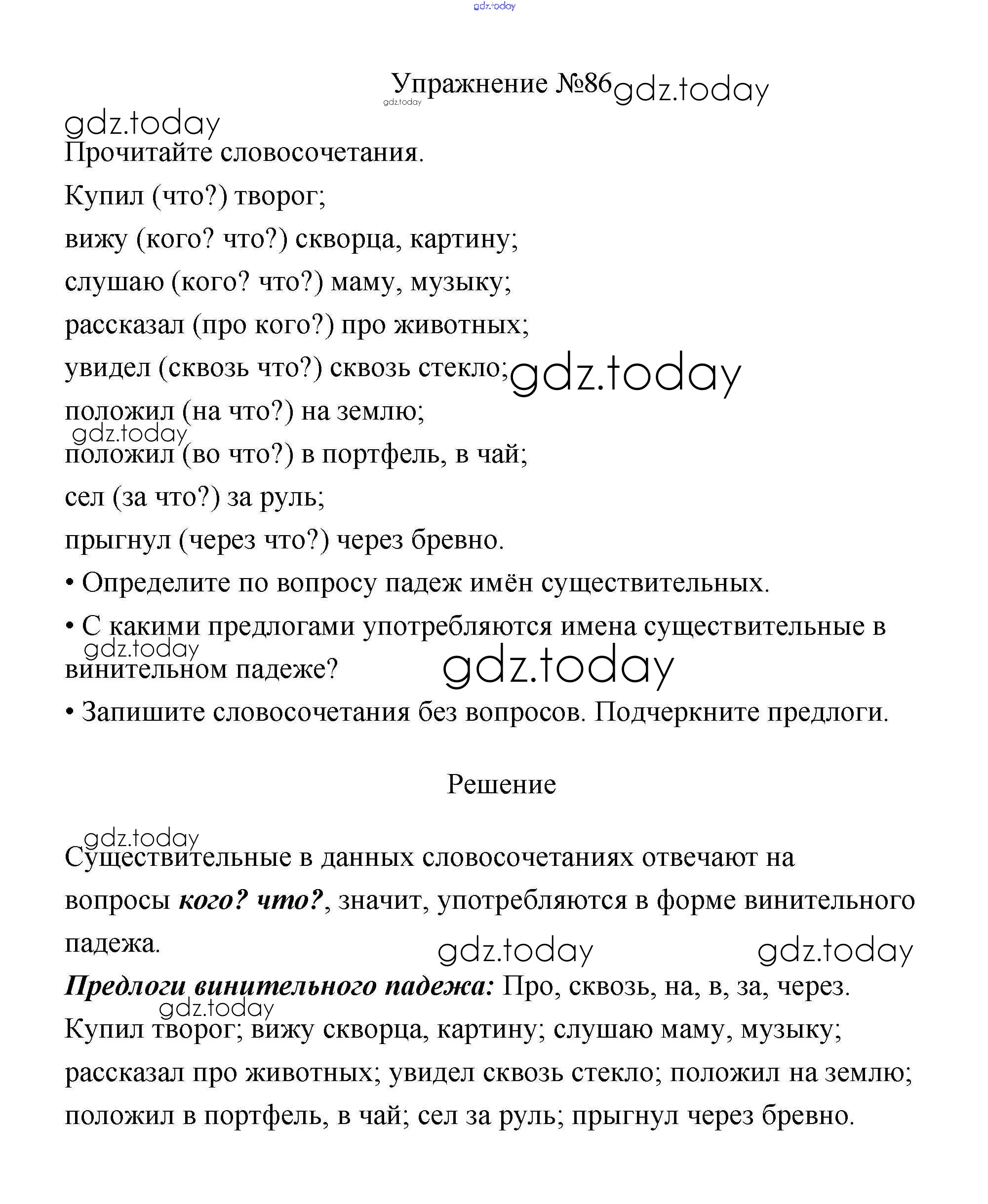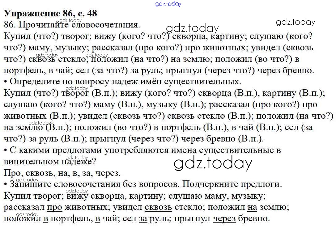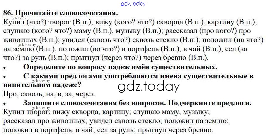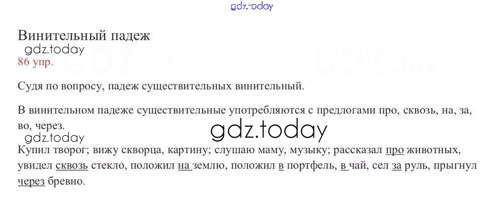 На страницах сайта gdz.today вы найдете учебный и вспомогательный материал, направленный на улучшения знаний школьной программы. ГДЗ - онлайн мир знаний Упражнения Часть 2 86 Учебнику по Русскому языку для 3 класса Канакина, Горецкий Просвещение Школа России 2013