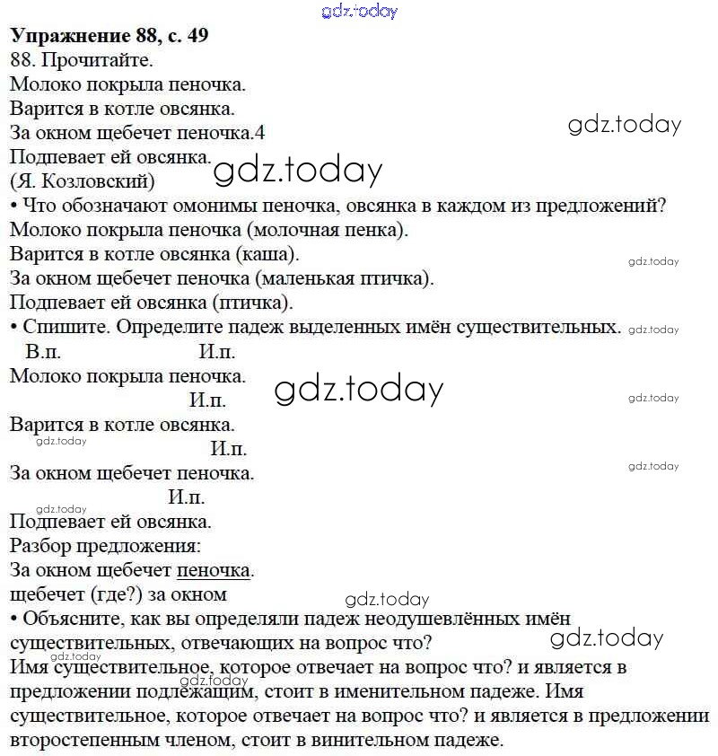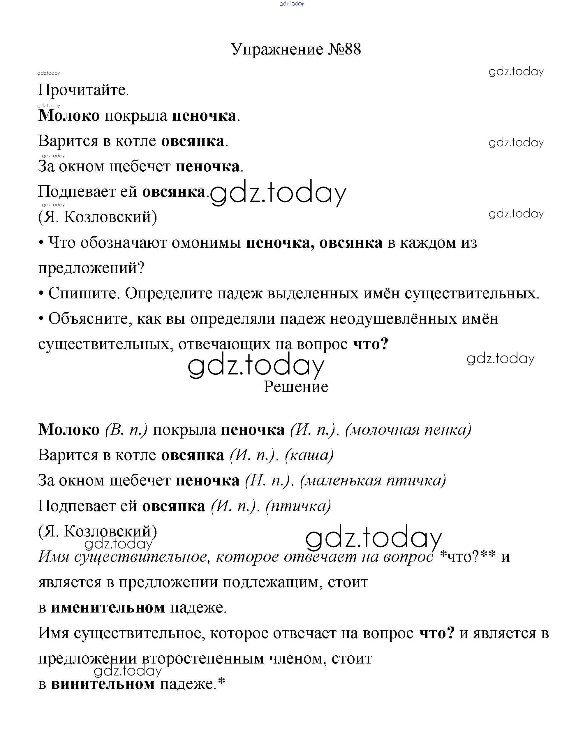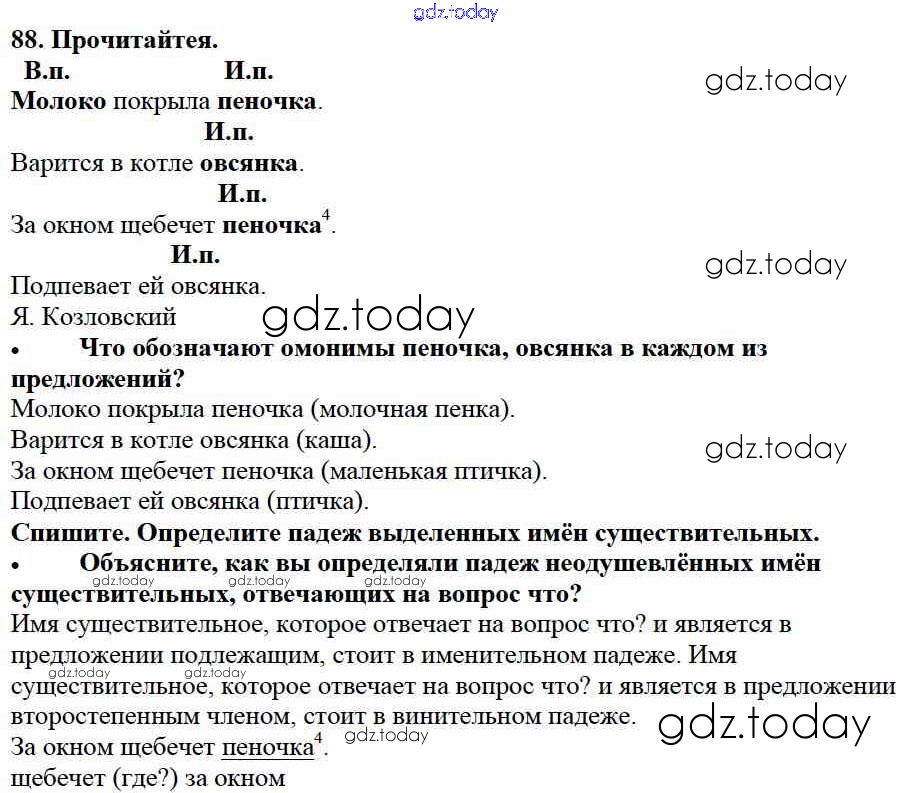 На страницах сайта gdz.today вы найдете учебный и вспомогательный материал, направленный на улучшения знаний школьной программы. ГДЗ - онлайн мир знаний Упражнения Часть 2 88 Учебнику по Русскому языку для 3 класса Канакина, Горецкий Просвещение Школа России 2013