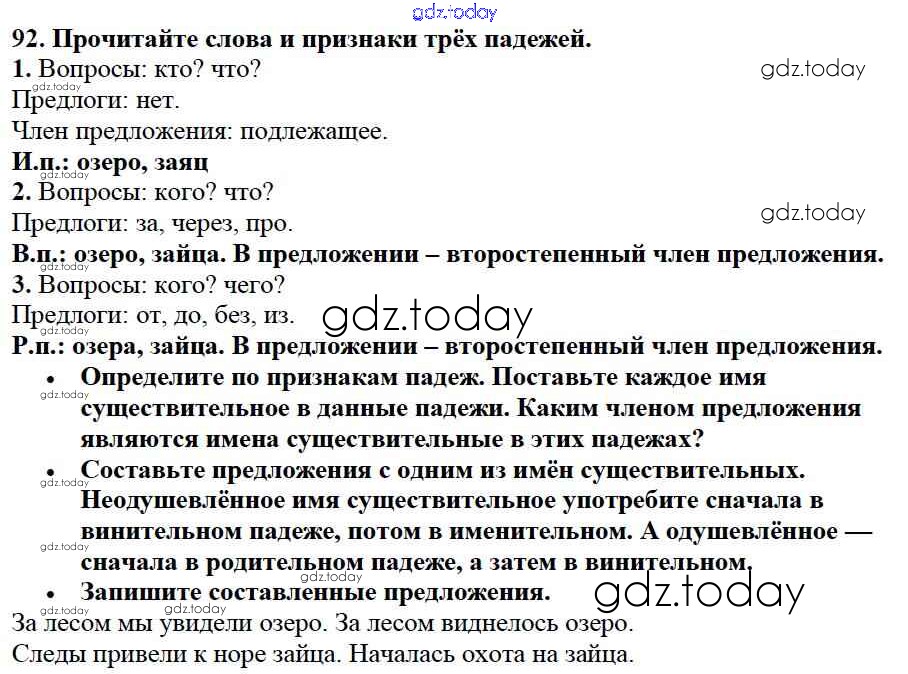 На страницах сайта gdz.today вы найдете учебный и вспомогательный материал, направленный на улучшения знаний школьной программы. ГДЗ - онлайн мир знаний Упражнения Часть 2 92 Учебнику по Русскому языку для 3 класса Канакина, Горецкий Просвещение Школа России 2013