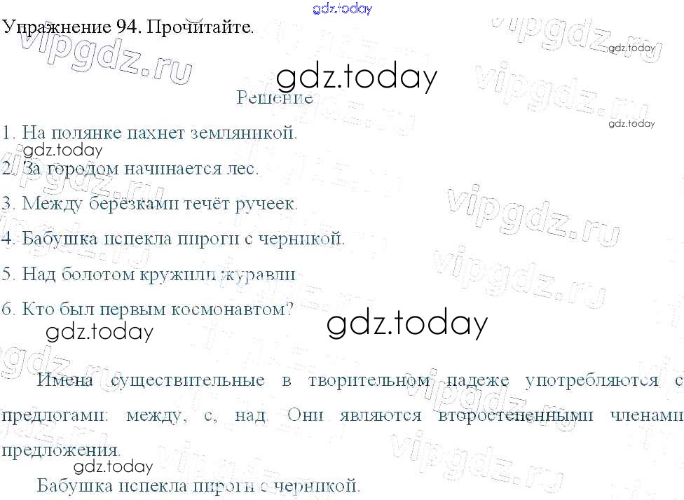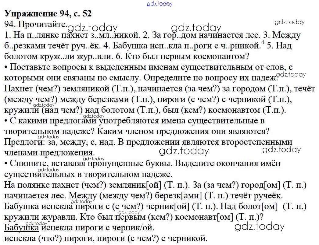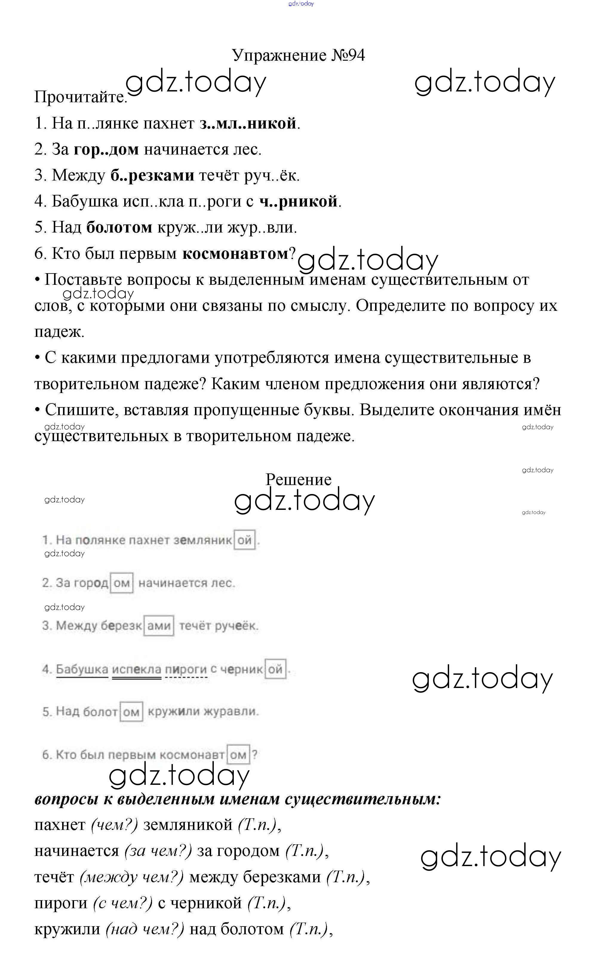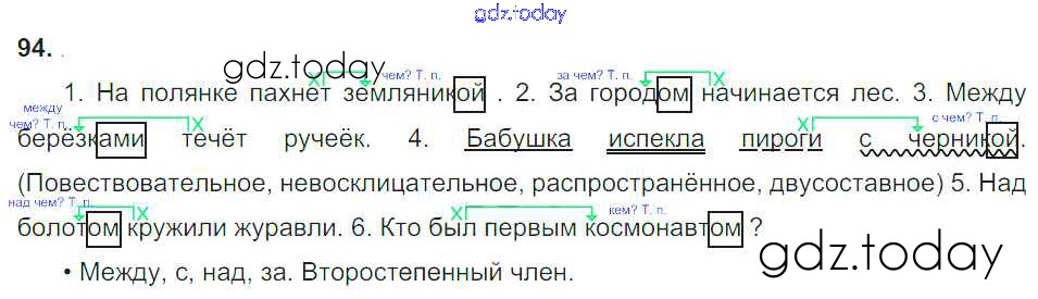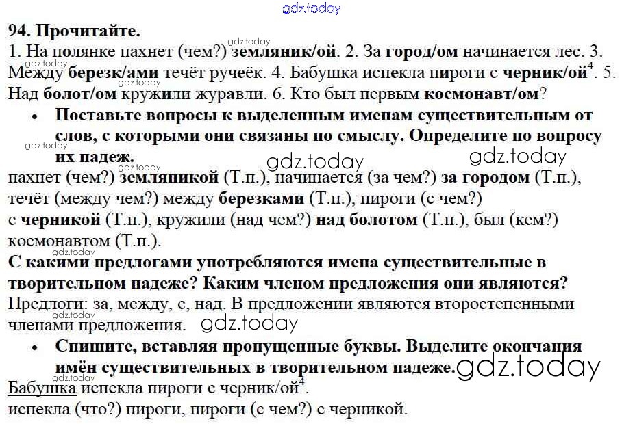 На страницах сайта gdz.today вы найдете учебный и вспомогательный материал, направленный на улучшения знаний школьной программы. ГДЗ - онлайн мир знаний Упражнения Часть 2 94 Учебнику по Русскому языку для 3 класса Канакина, Горецкий Просвещение Школа России 2013