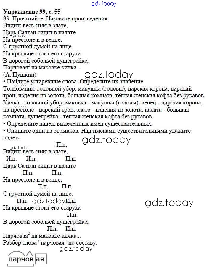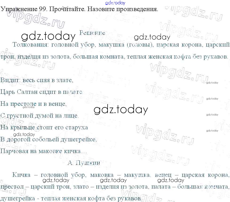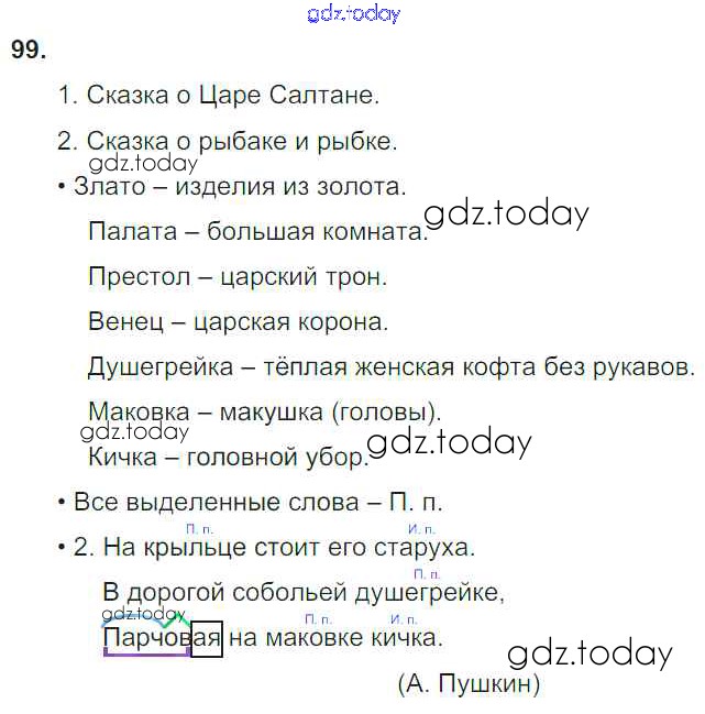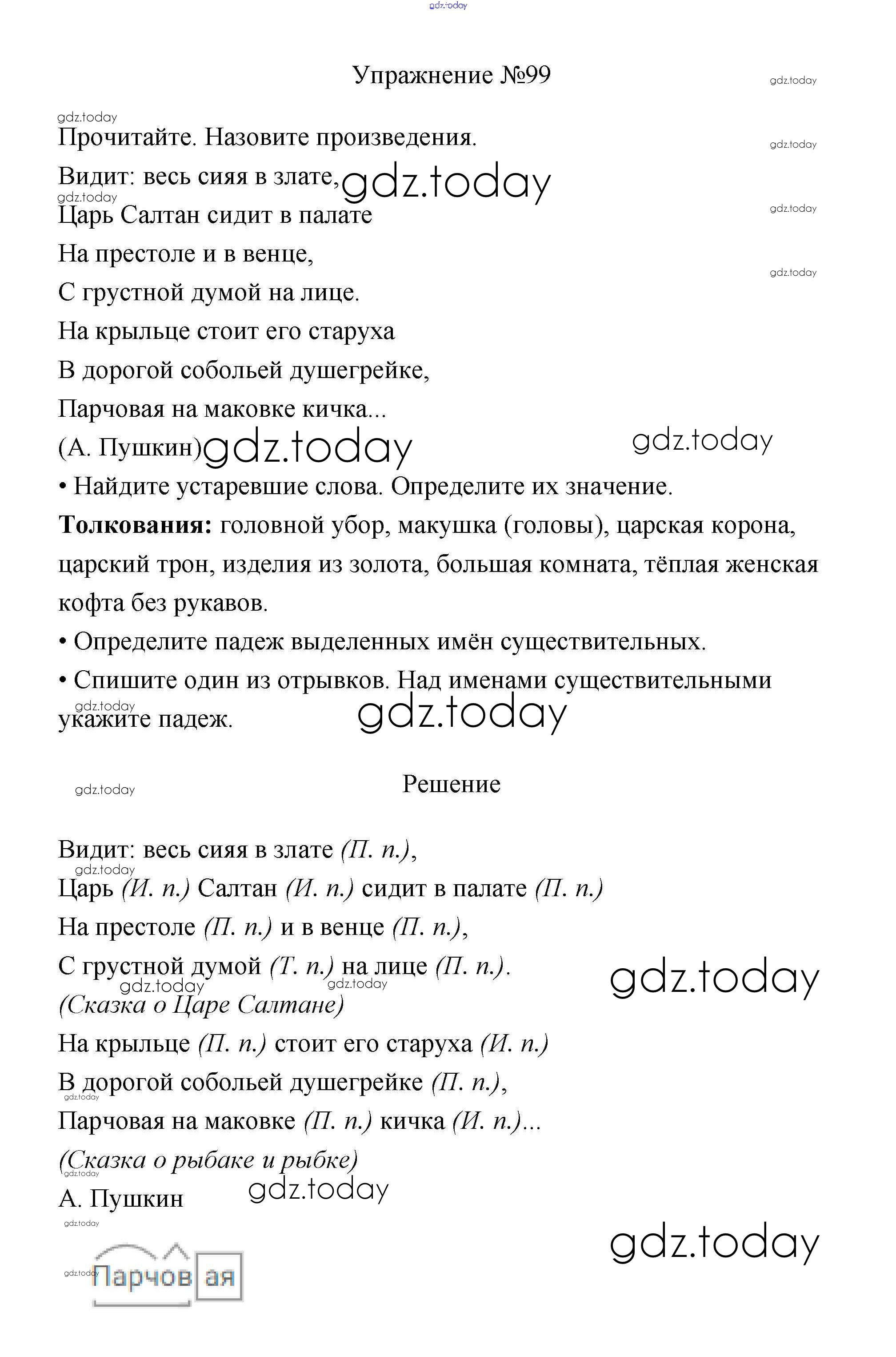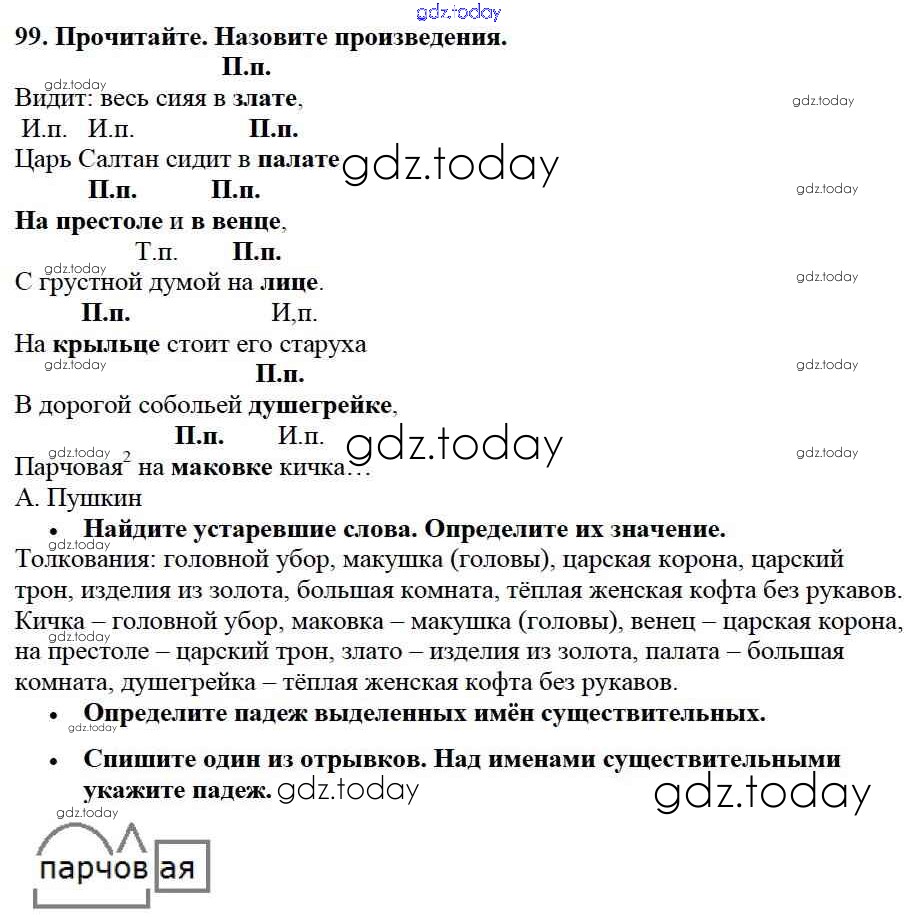 На страницах сайта gdz.today вы найдете учебный и вспомогательный материал, направленный на улучшения знаний школьной программы. ГДЗ - онлайн мир знаний Упражнения Часть 2 99 Учебнику по Русскому языку для 3 класса Канакина, Горецкий Просвещение Школа России 2013