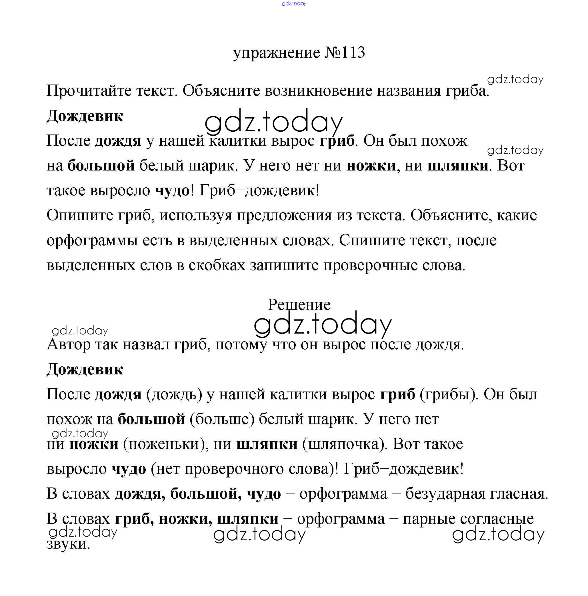 Ответы к Упражнения Решение. Часть 1 113 Учебнику по Русскому языку для 3 класса Климанова, Бабушкина Просвещение Перспектива 2019