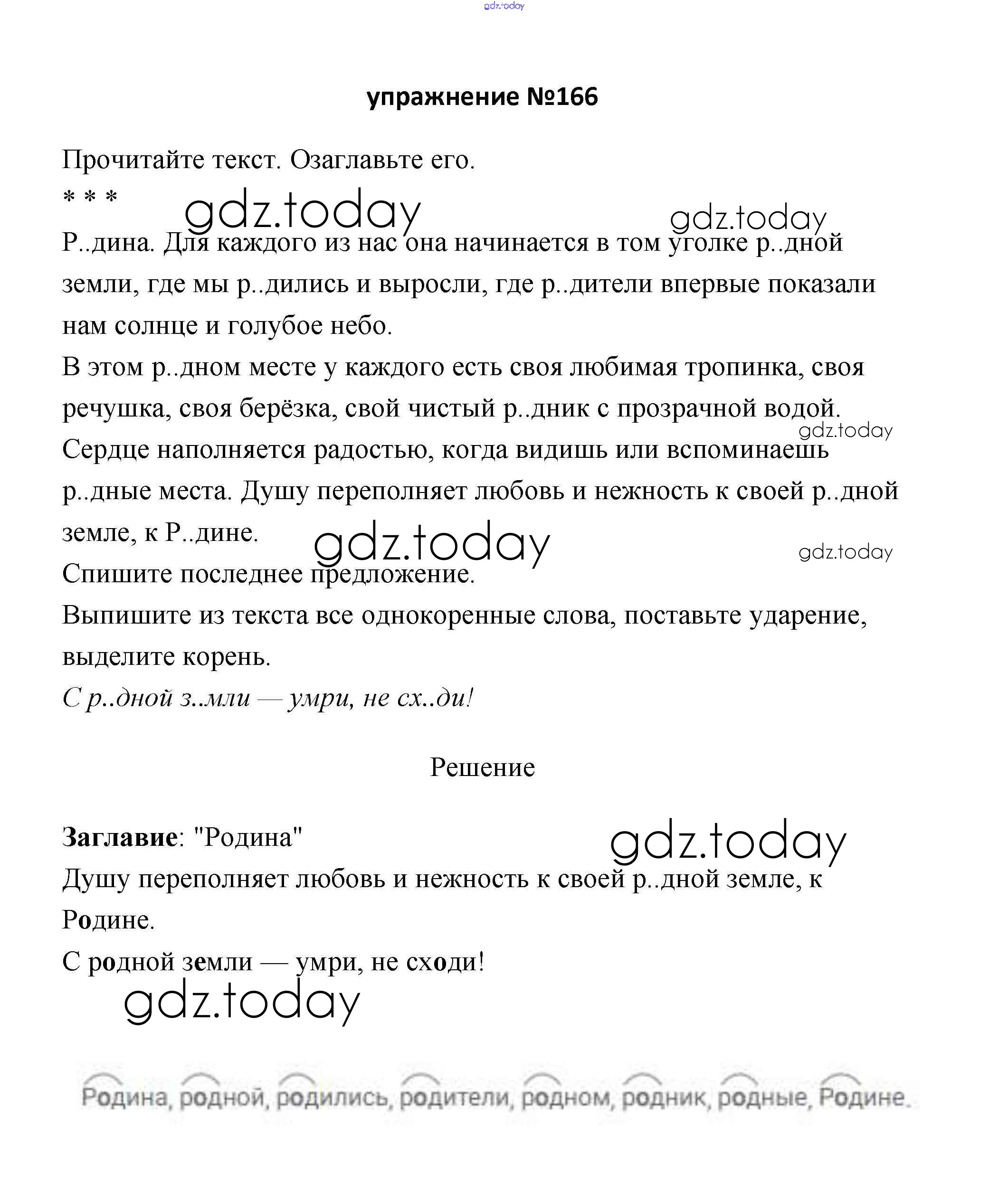 На страницах сайта gdz.today вы найдете учебный и вспомогательный материал, направленный на улучшения знаний школьной программы. ГДЗ - онлайн мир знаний Упражнения Решение. Часть 1 166 Учебнику по Русскому языку для 3 класса Климанова, Бабушкина Просвещение Перспектива 2019