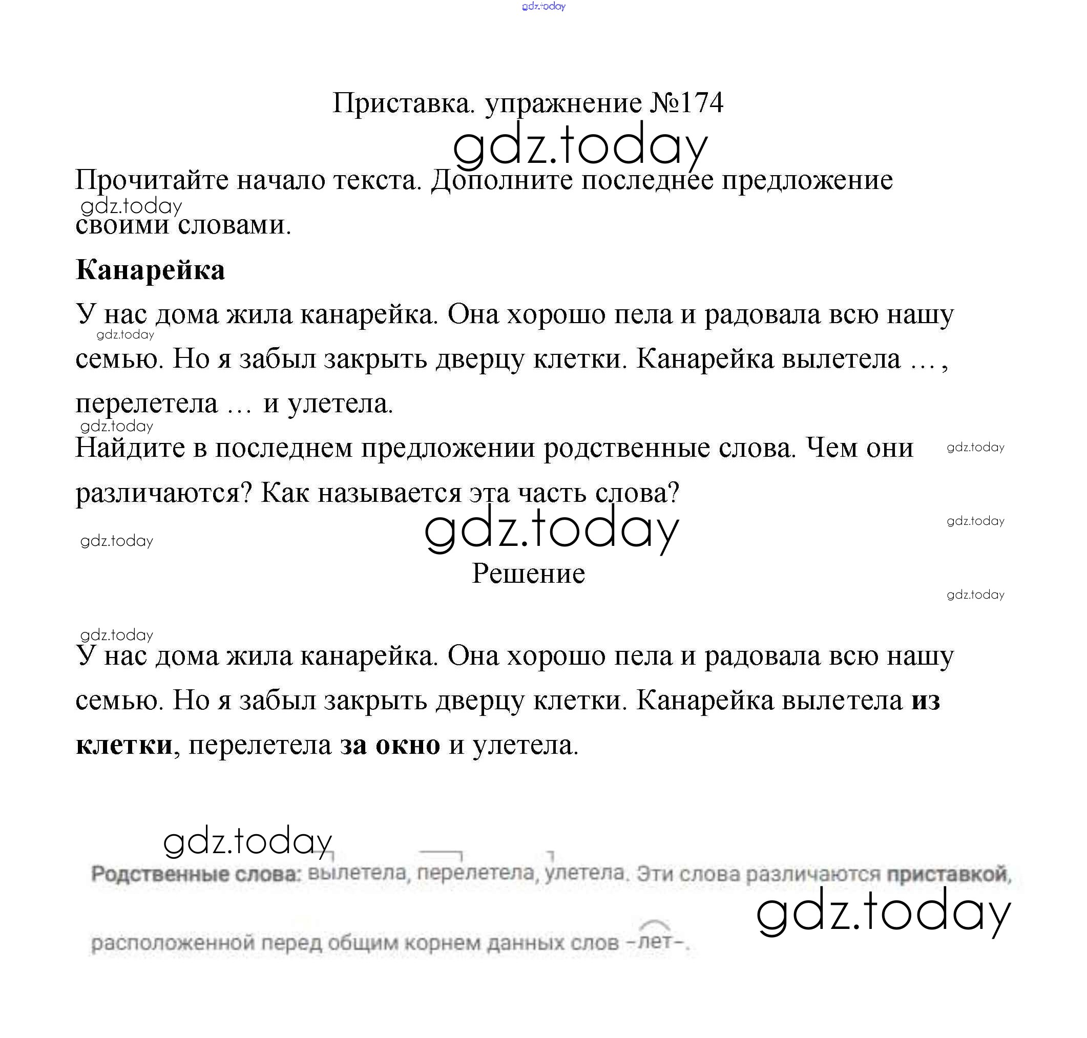 На страницах сайта gdz.today вы найдете учебный и вспомогательный материал, направленный на улучшения знаний школьной программы. ГДЗ - онлайн мир знаний Упражнения Решение. Часть 1 174 Учебнику по Русскому языку для 3 класса Климанова, Бабушкина Просвещение Перспектива 2019