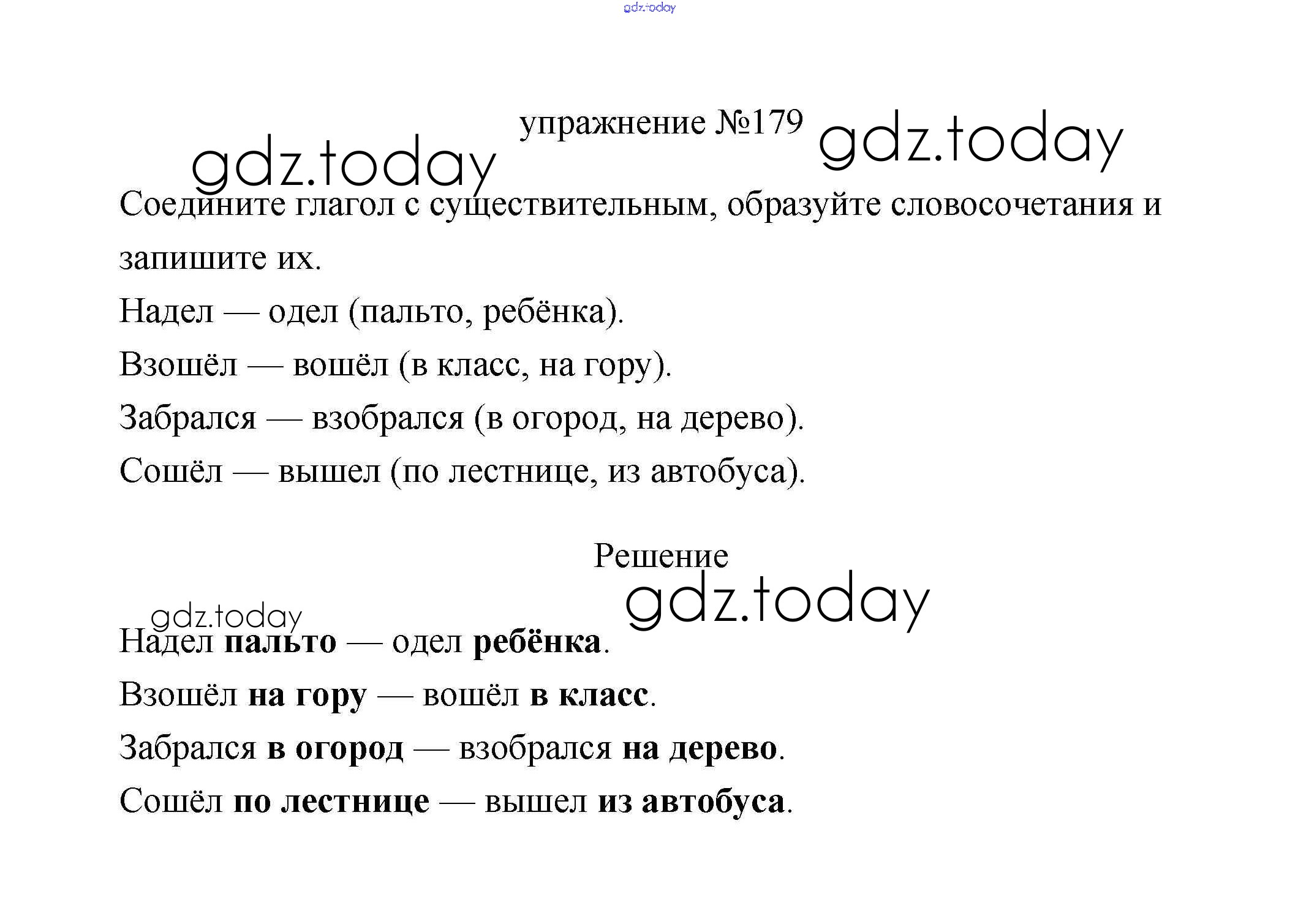 На страницах сайта gdz.today вы найдете учебный и вспомогательный материал, направленный на улучшения знаний школьной программы. ГДЗ - онлайн мир знаний Упражнения Решение. Часть 1 179 Учебнику по Русскому языку для 3 класса Климанова, Бабушкина Просвещение Перспектива 2019