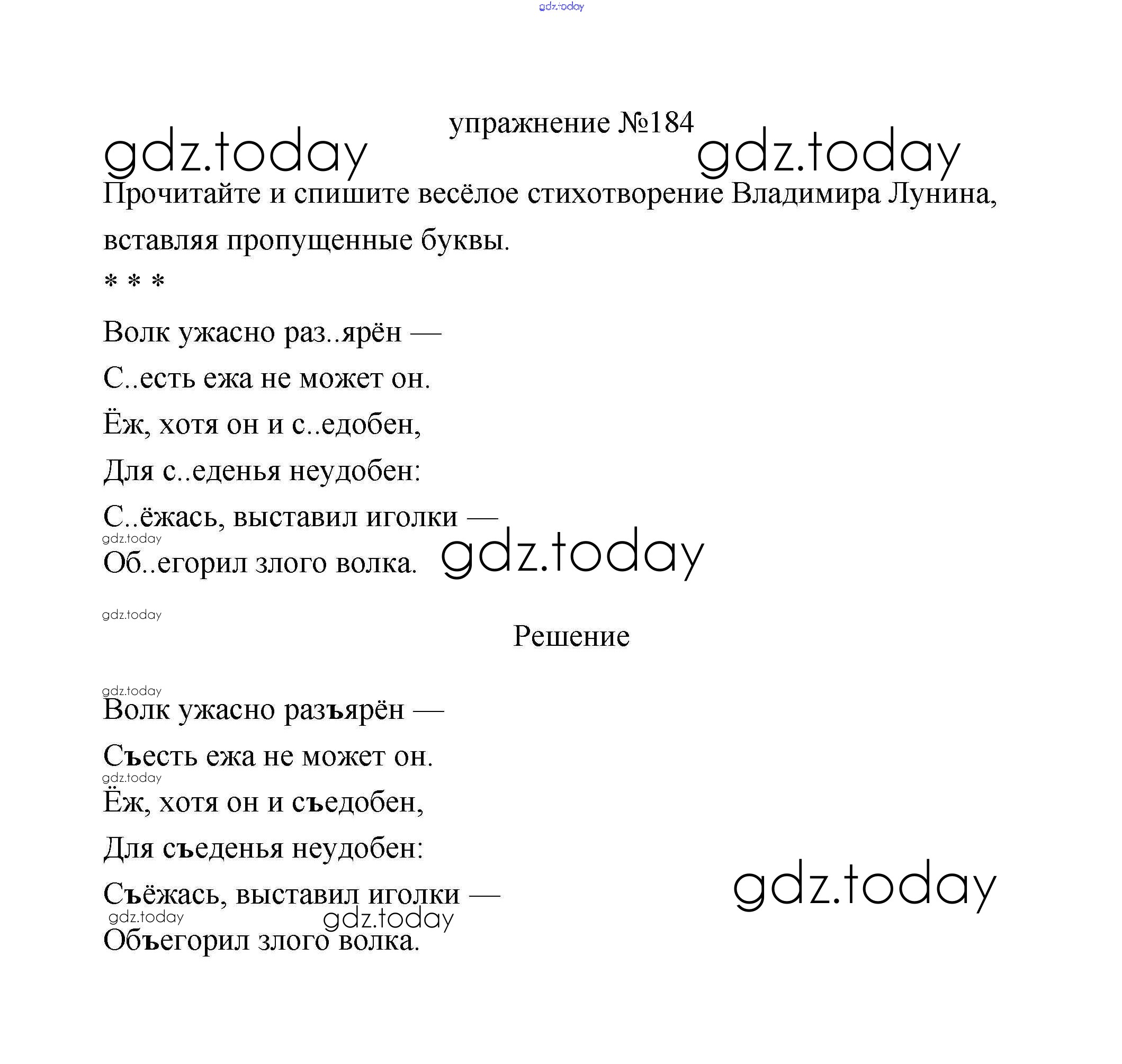 На страницах сайта gdz.today вы найдете учебный и вспомогательный материал, направленный на улучшения знаний школьной программы. ГДЗ - онлайн мир знаний Упражнения Решение. Часть 1 184 Учебнику по Русскому языку для 3 класса Климанова, Бабушкина Просвещение Перспектива 2019