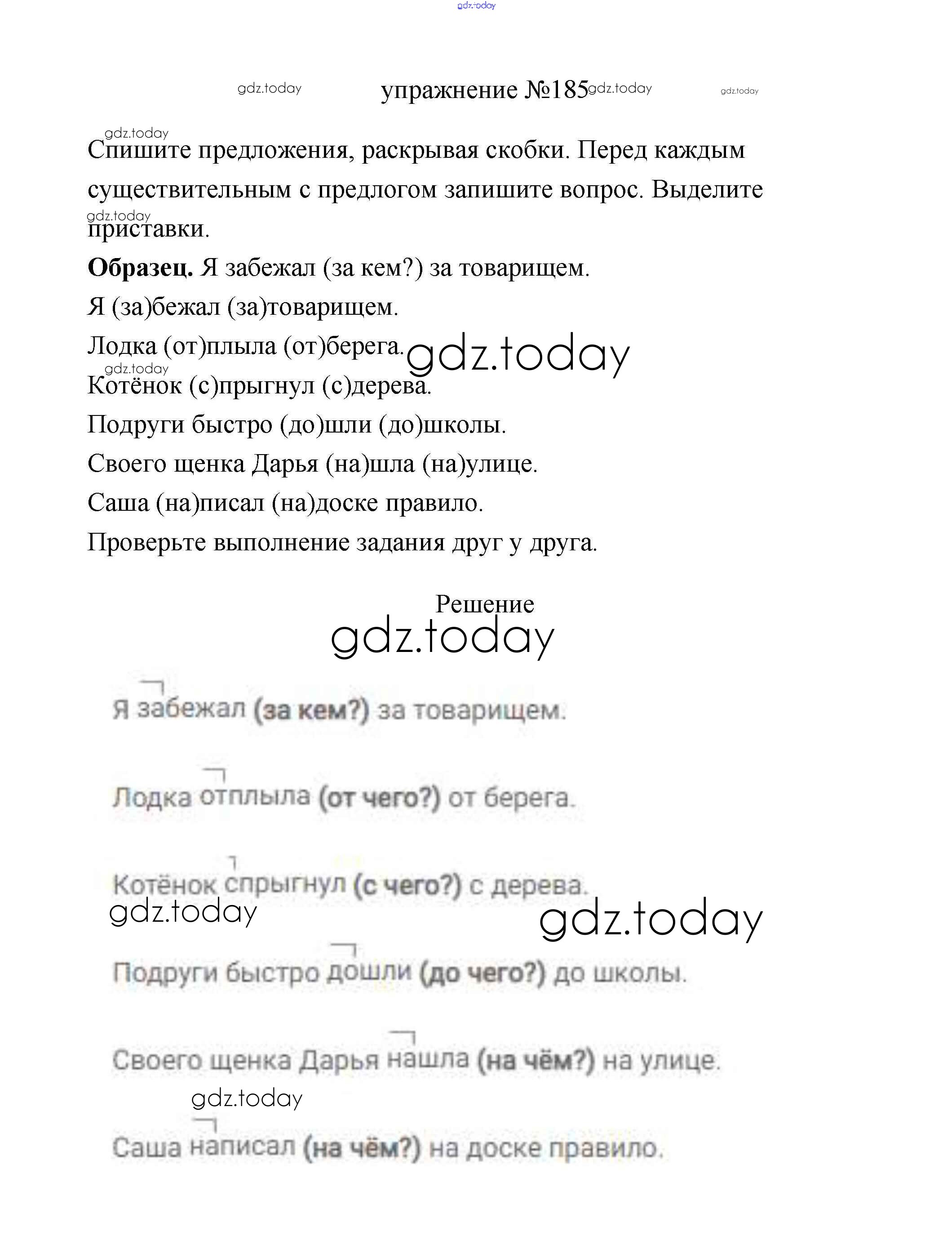 На страницах сайта gdz.today вы найдете учебный и вспомогательный материал, направленный на улучшения знаний школьной программы. ГДЗ - онлайн мир знаний Упражнения Решение. Часть 1 185 Учебнику по Русскому языку для 3 класса Климанова, Бабушкина Просвещение Перспектива 2019