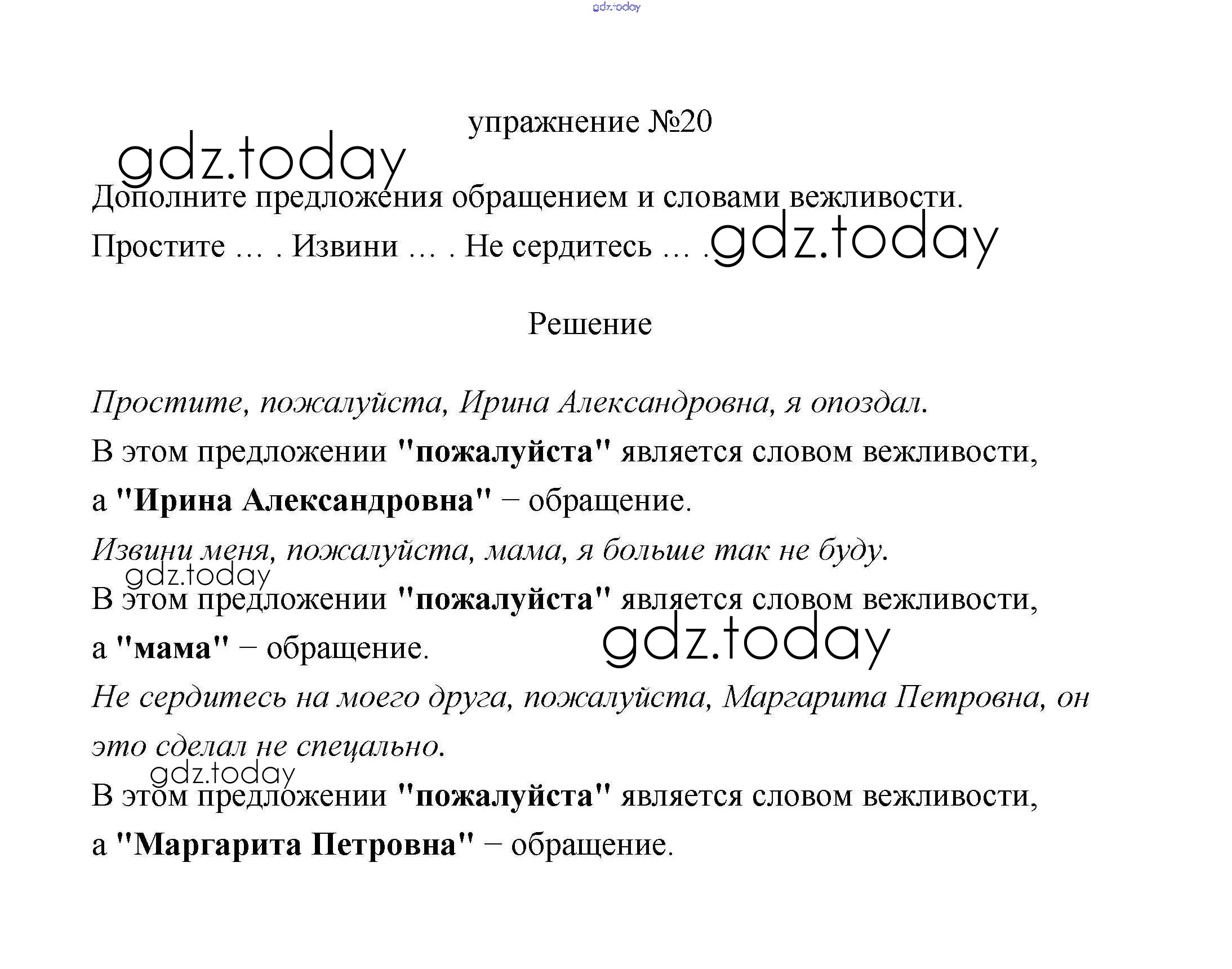 На страницах сайта gdz.today вы найдете учебный и вспомогательный материал, направленный на улучшения знаний школьной программы. ГДЗ - онлайн мир знаний Упражнения Решение. Часть 1 20 Учебнику по Русскому языку для 3 класса Климанова, Бабушкина Просвещение Перспектива 2019