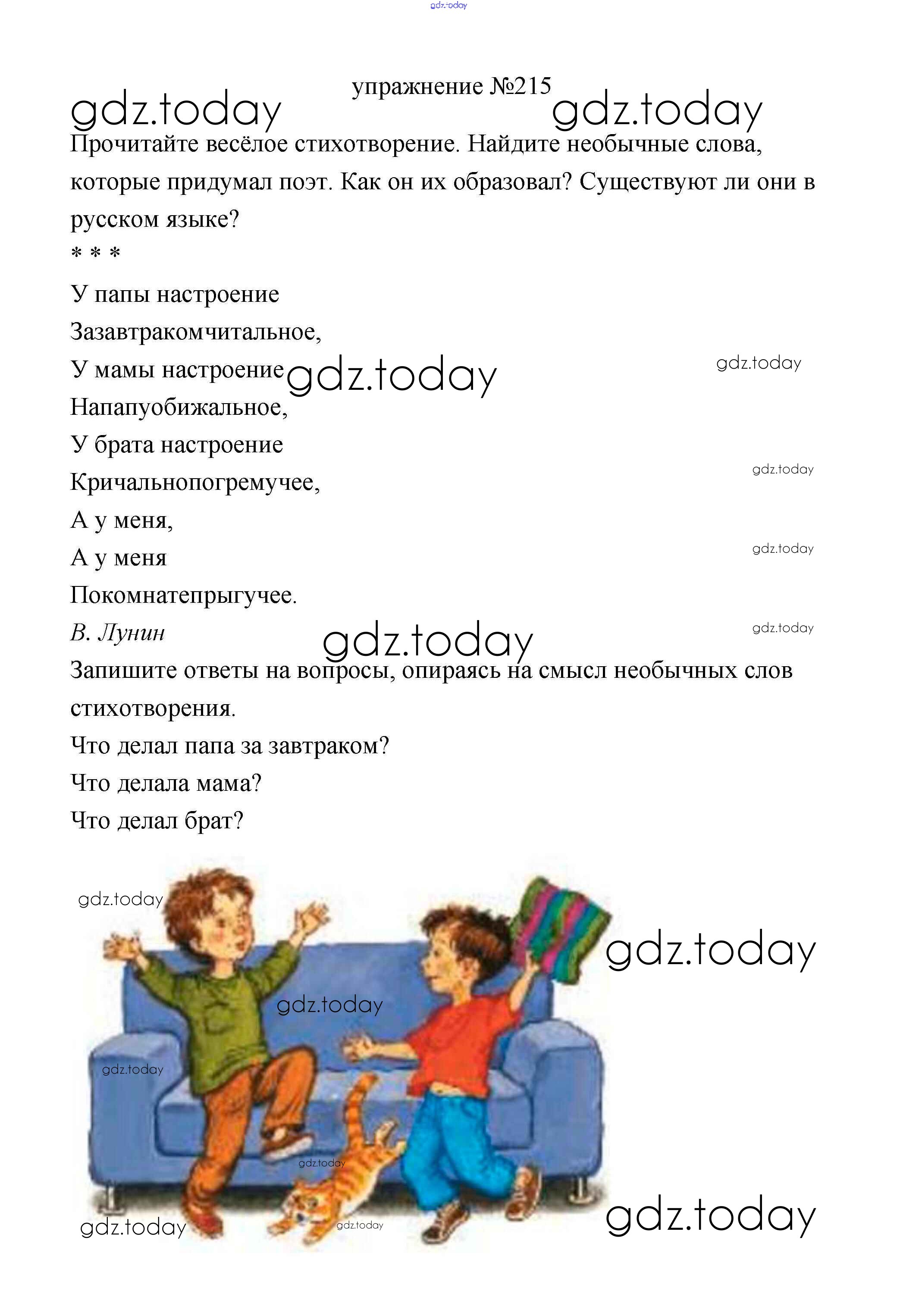 На страницах сайта gdz.today вы найдете учебный и вспомогательный материал, направленный на улучшения знаний школьной программы. ГДЗ - онлайн мир знаний Упражнения Решение. Часть 1 215 Учебнику по Русскому языку для 3 класса Климанова, Бабушкина Просвещение Перспектива 2019