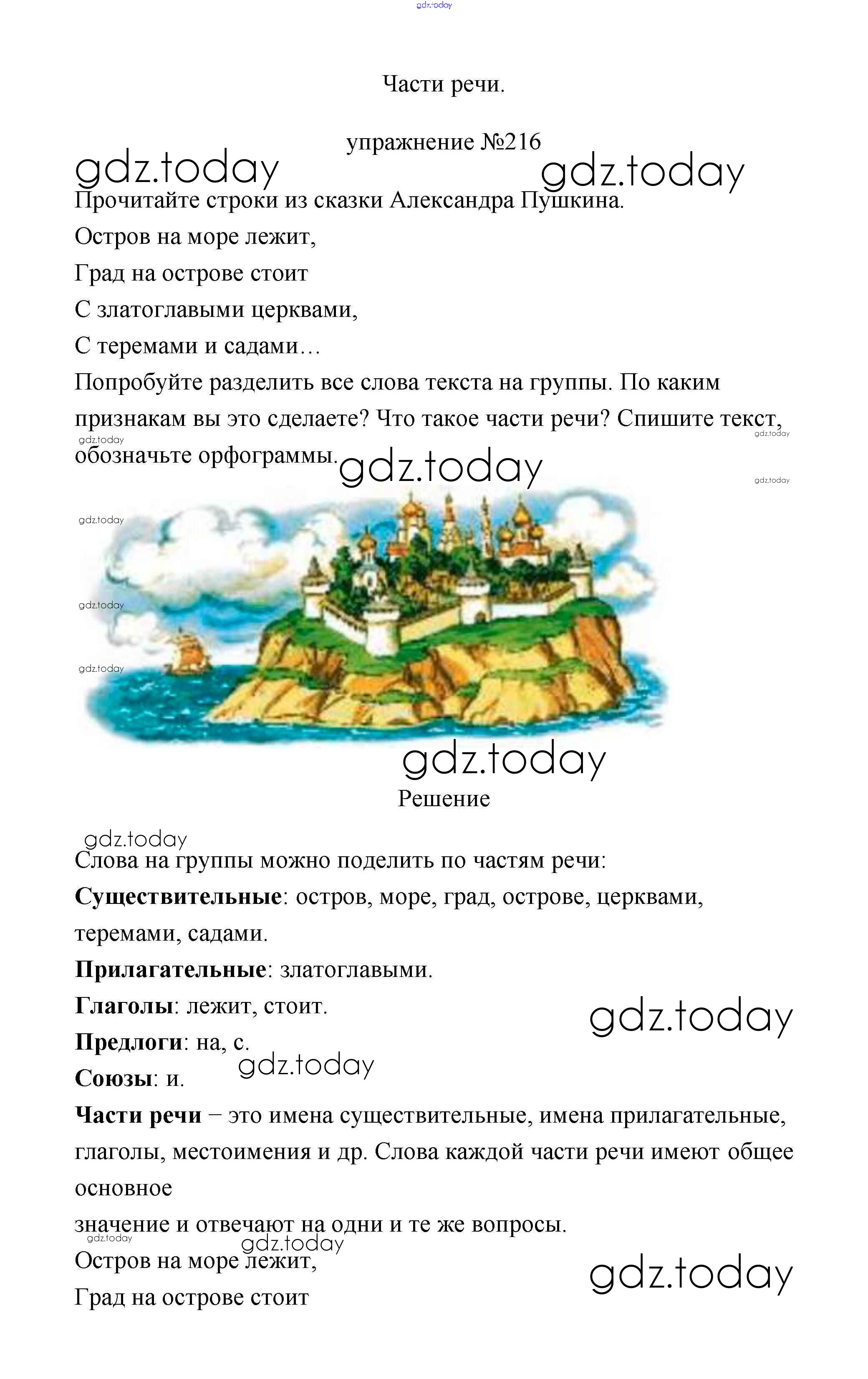 На страницах сайта gdz.today вы найдете учебный и вспомогательный материал, направленный на улучшения знаний школьной программы. ГДЗ - онлайн мир знаний Упражнения Решение. Часть 1 216 Учебнику по Русскому языку для 3 класса Климанова, Бабушкина Просвещение Перспектива 2019