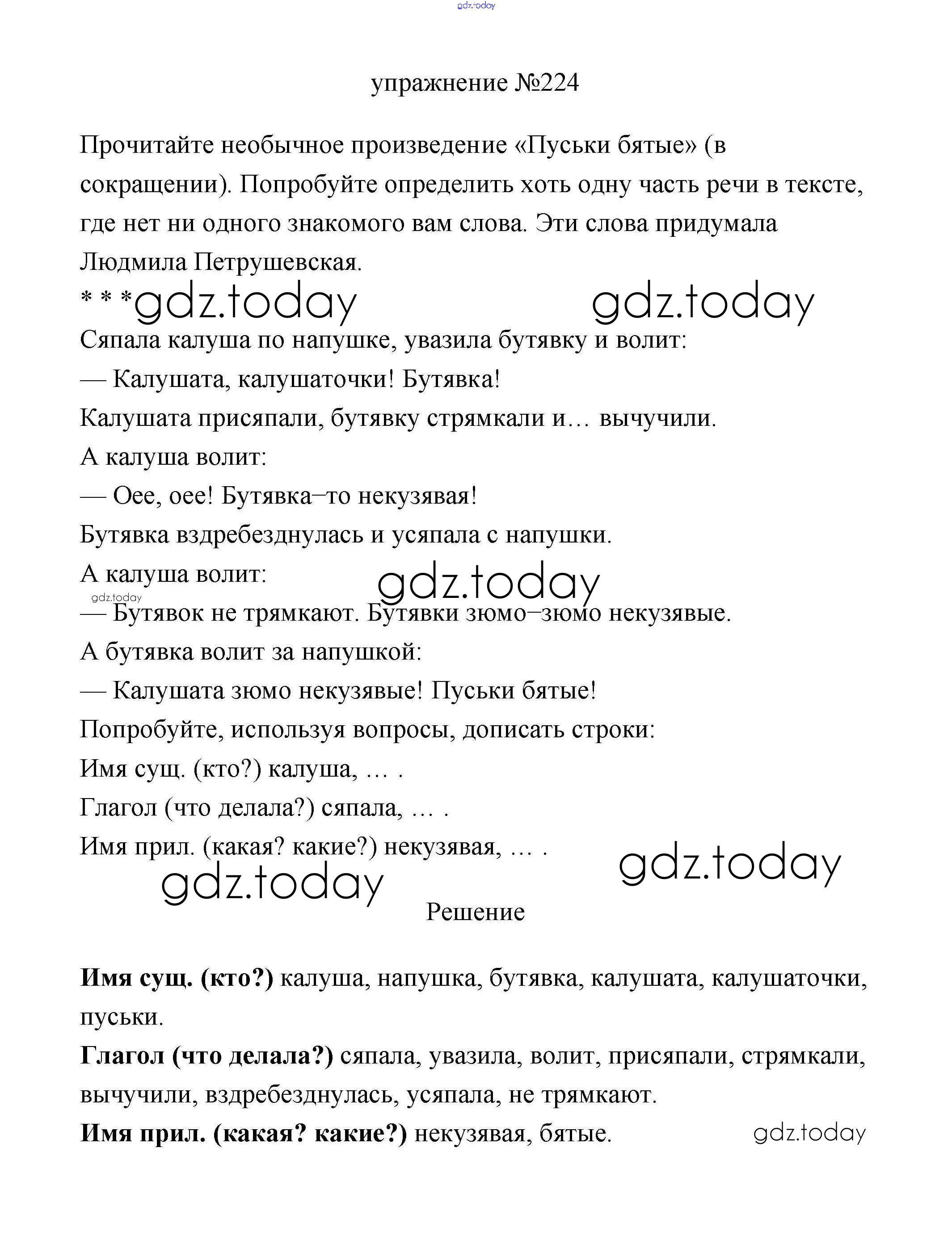 На страницах сайта gdz.today вы найдете учебный и вспомогательный материал, направленный на улучшения знаний школьной программы. ГДЗ - онлайн мир знаний Упражнения Решение. Часть 1 224 Учебнику по Русскому языку для 3 класса Климанова, Бабушкина Просвещение Перспектива 2019
