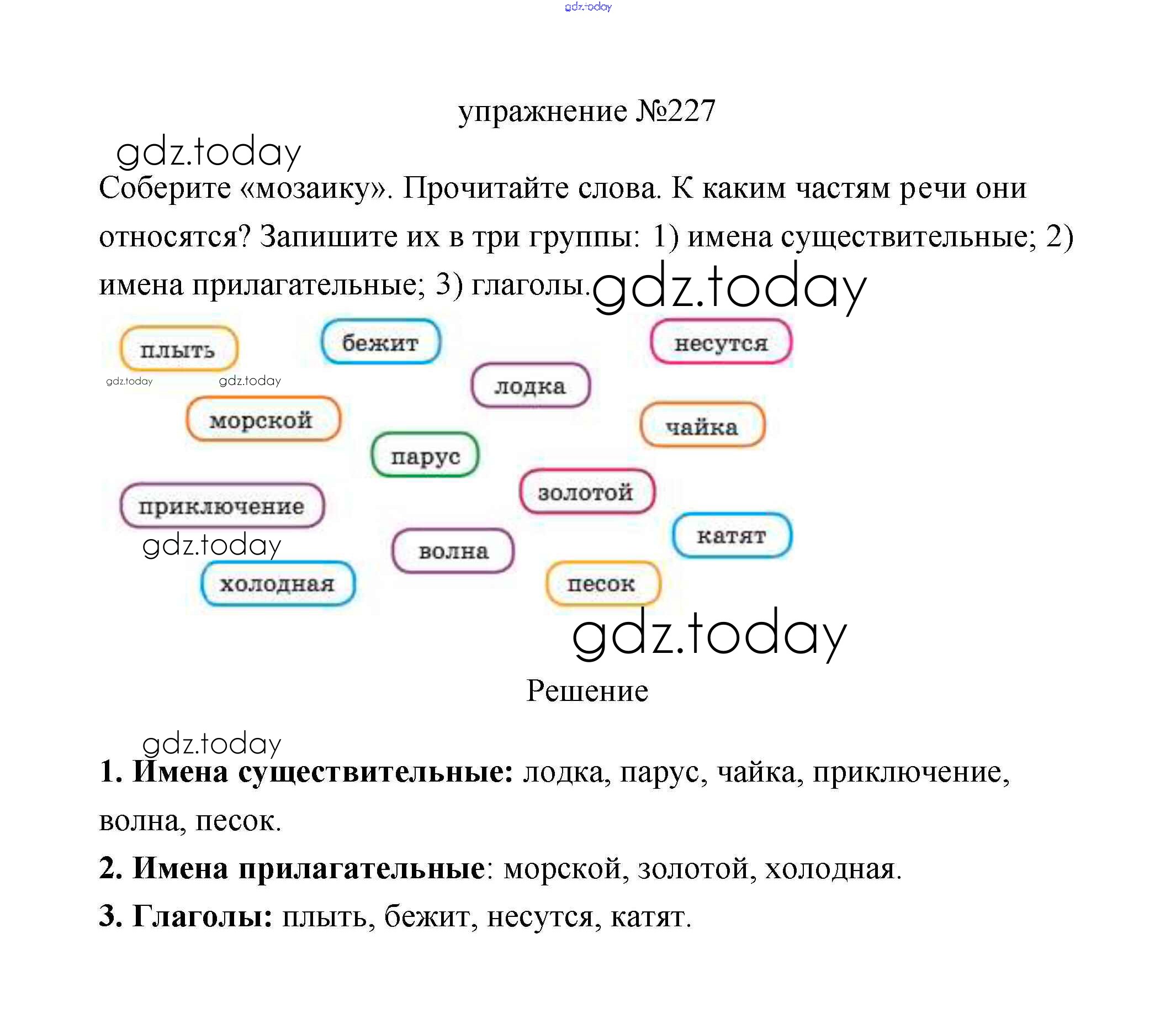 На страницах сайта gdz.today вы найдете учебный и вспомогательный материал, направленный на улучшения знаний школьной программы. ГДЗ - онлайн мир знаний Упражнения Решение. Часть 1 227 Учебнику по Русскому языку для 3 класса Климанова, Бабушкина Просвещение Перспектива 2019