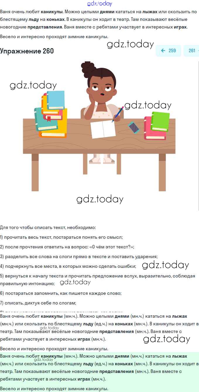 На страницах сайта gdz.today вы найдете учебный и вспомогательный материал, направленный на улучшения знаний школьной программы. ГДЗ - онлайн мир знаний Упражнения Решение. Часть 1 260 Учебнику по Русскому языку для 3 класса Климанова, Бабушкина Просвещение Перспектива 2019