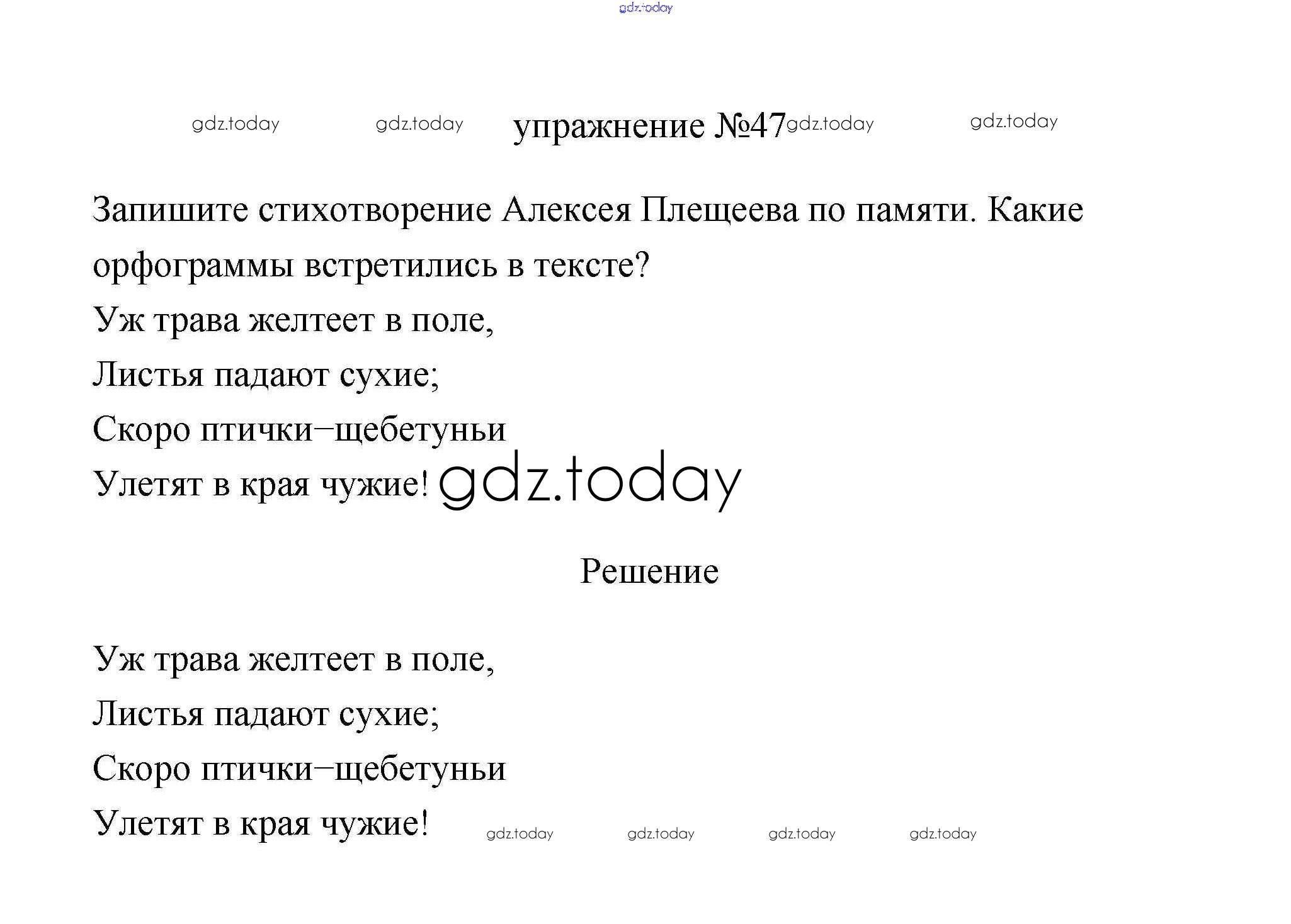 На страницах сайта gdz.today вы найдете учебный и вспомогательный материал, направленный на улучшения знаний школьной программы. ГДЗ - онлайн мир знаний Упражнения Решение. Часть 1 47 Учебнику по Русскому языку для 3 класса Климанова, Бабушкина Просвещение Перспектива 2019