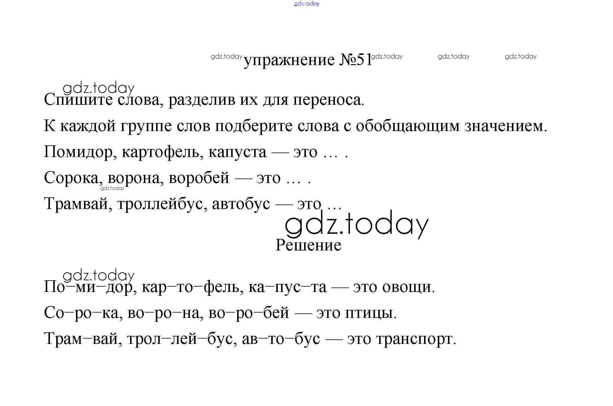 Ответы к Упражнения Решение. Часть 1 51 Учебнику по Русскому языку для 3 класса Климанова, Бабушкина Просвещение Перспектива 2019