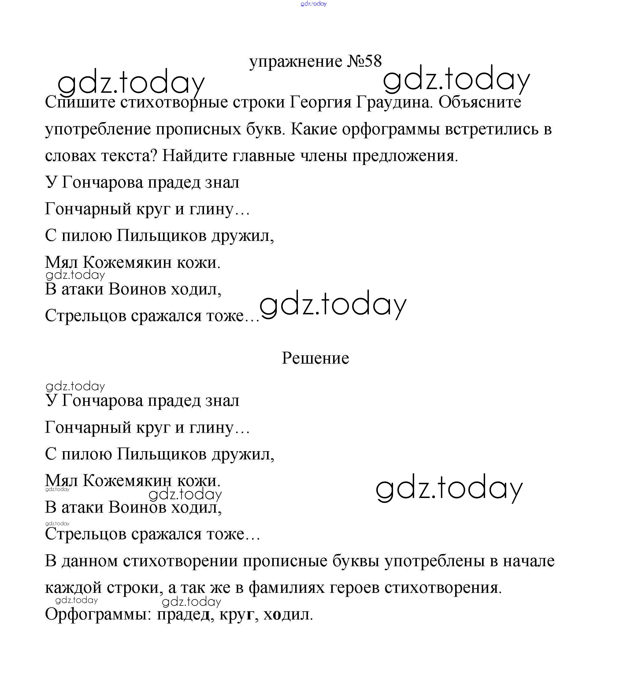На страницах сайта gdz.today вы найдете учебный и вспомогательный материал, направленный на улучшения знаний школьной программы. ГДЗ - онлайн мир знаний Упражнения Решение. Часть 1 58 Учебнику по Русскому языку для 3 класса Климанова, Бабушкина Просвещение Перспектива 2019