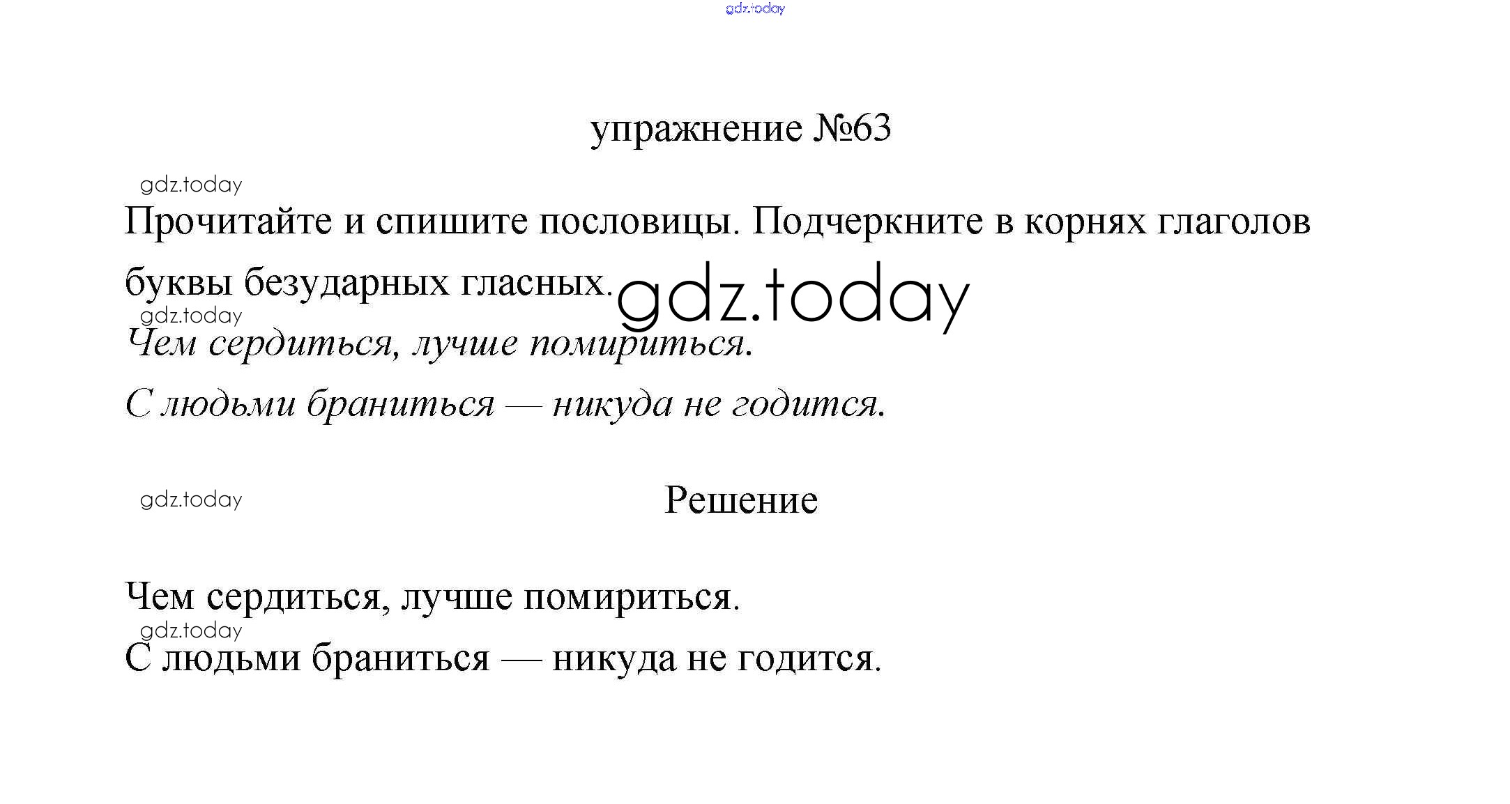 Ответы к Упражнения Решение. Часть 1 63 Учебнику по Русскому языку для 3 класса Климанова, Бабушкина Просвещение Перспектива 2019