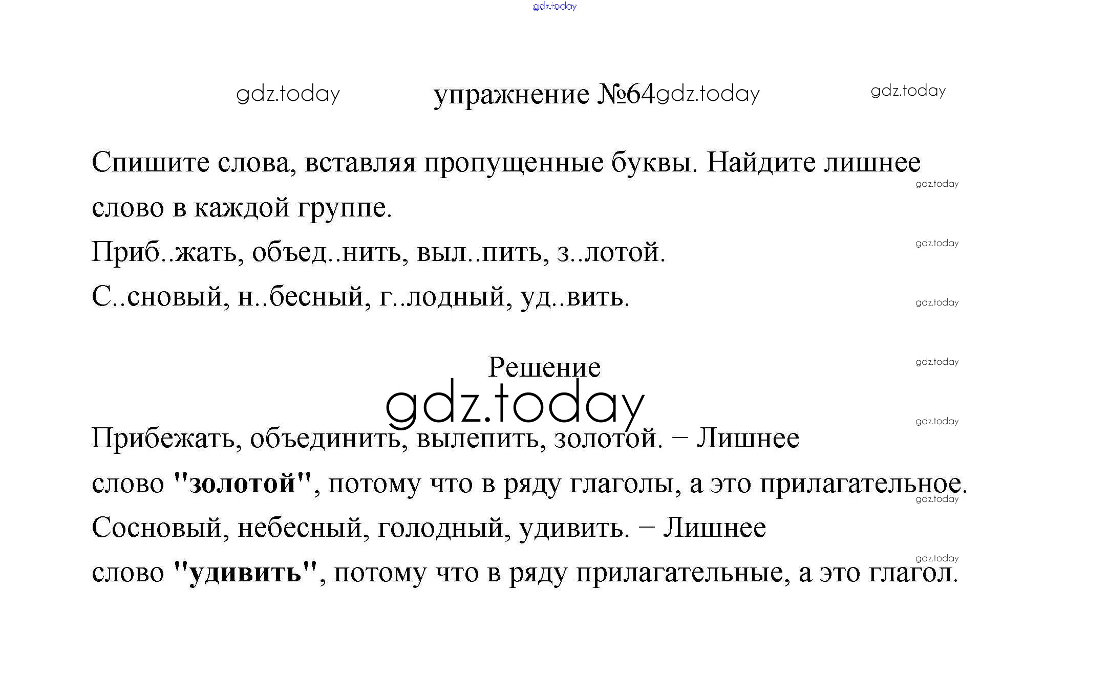 Ответы к Упражнения Решение. Часть 1 64 Учебнику по Русскому языку для 3 класса Климанова, Бабушкина Просвещение Перспектива 2019