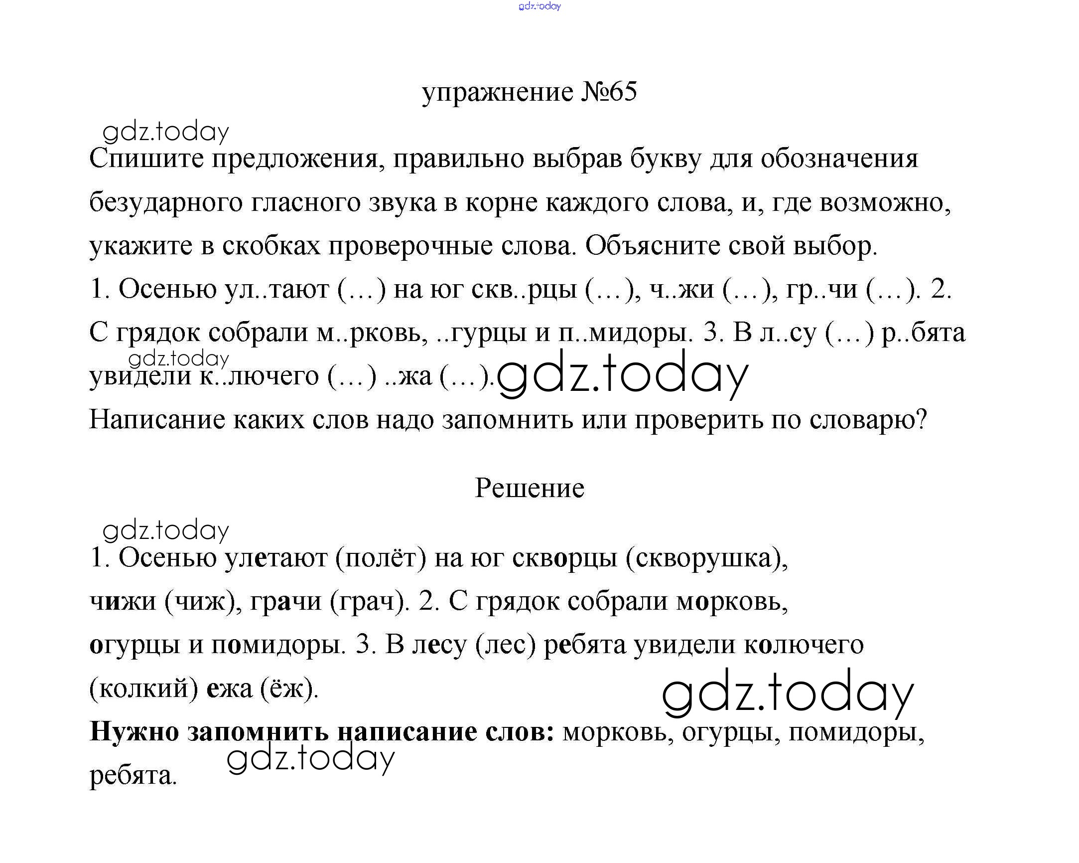 На страницах сайта gdz.today вы найдете учебный и вспомогательный материал, направленный на улучшения знаний школьной программы. ГДЗ - онлайн мир знаний Упражнения Решение. Часть 1 65 Учебнику по Русскому языку для 3 класса Климанова, Бабушкина Просвещение Перспектива 2019
